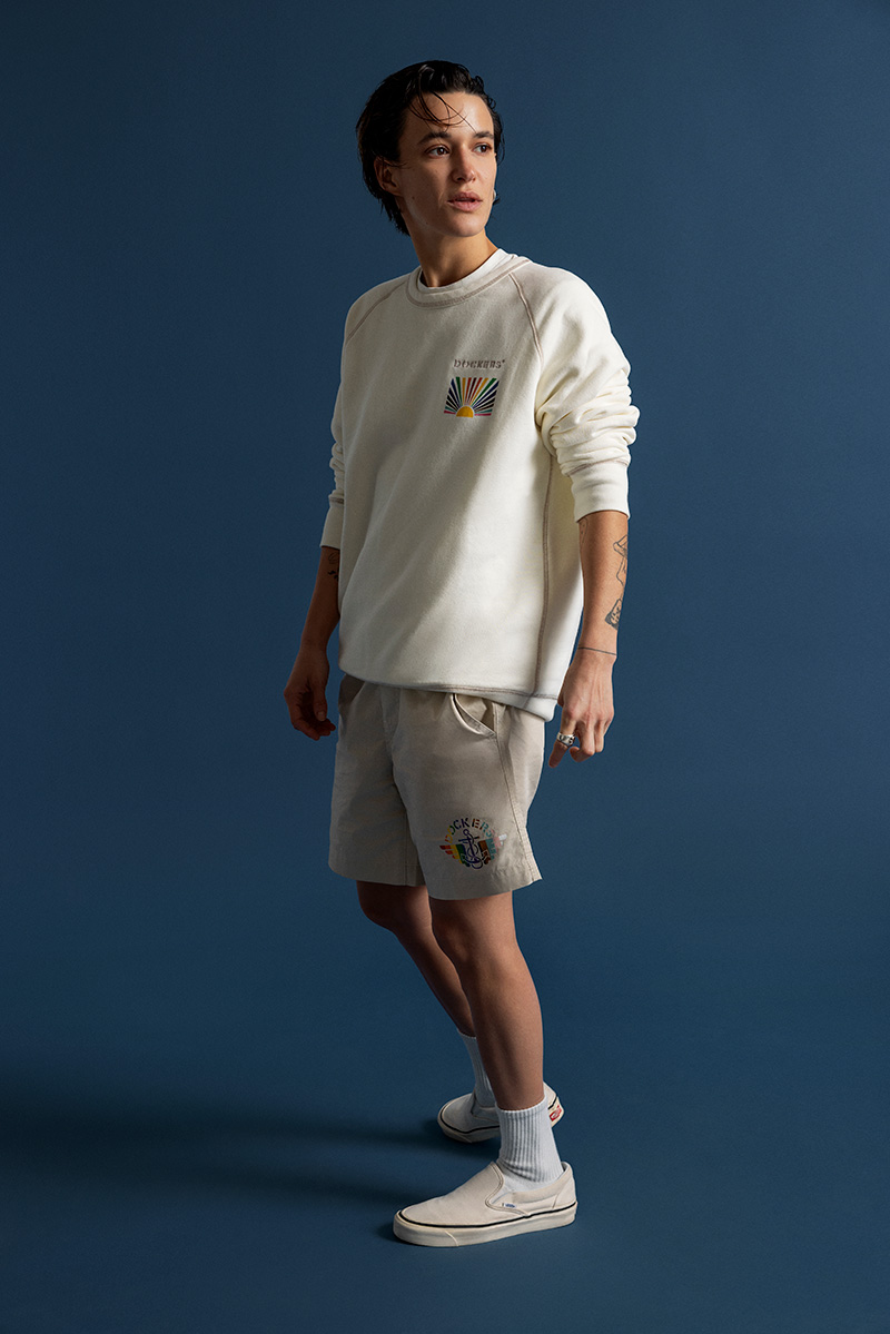 En apoyo a estas prendas, se presentan otras opciones como una camiseta de tirantes, una sudadera de cuello crewneck y unos pantalones cortos; en los icónicos tonos khaki que todos conocemos y amamos de Dockers. Además de los gráficos, de arcoíris que venos en toda la propuesta, Dockers Pride 2023 también incluye en los símbolos de la paz y el “te quiero” en lenguaje de signos bordados en algunas de sus prendas.