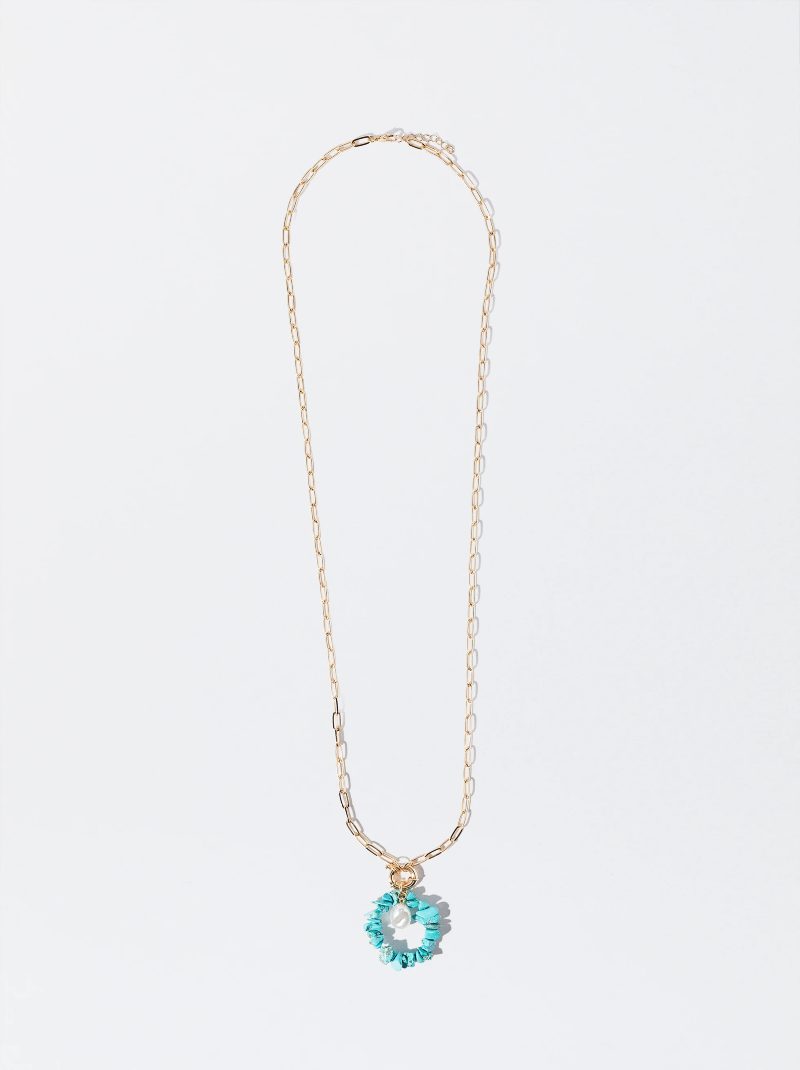 Se ve que esta temporada las perlas conquistan nuestros looks. En esta opción, el collar solo tiene una perla en el centro, porque los protagonistas son las piedras azul turquesa. Atrévete con este accesorio cuando empiece el buen tiempo, o para una ocasión especial. Añadirás un toque elegante que has estado buscando con un bolso o un zapato concreto. Por menos de 20 euros tienes una joya de experto.