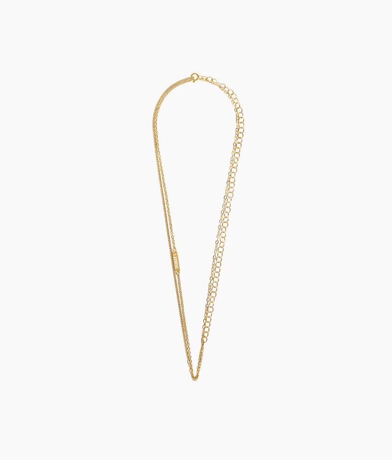 Suot Studio tiene mucho más que joyas con colores y formas estrambóticas. Tiene ese collar largo, o mejor dicho, muy largo, que es un básico para cualquier momento del día. Está recubierto de oro de 18k y tiene una mezcla de cadenas finas como: curvas, onduladas y redondas. Esta opción que te propones es la más indicada para un estilo urbano o de generación Z, pero también para aquel que quiera romper con su forma de vestir.