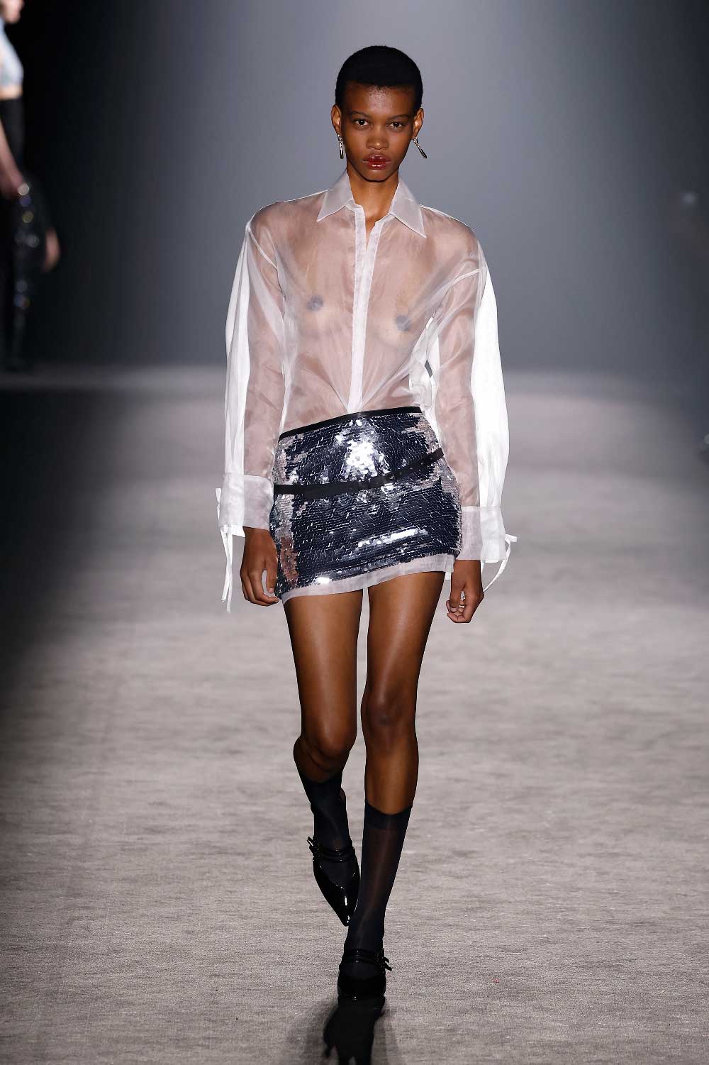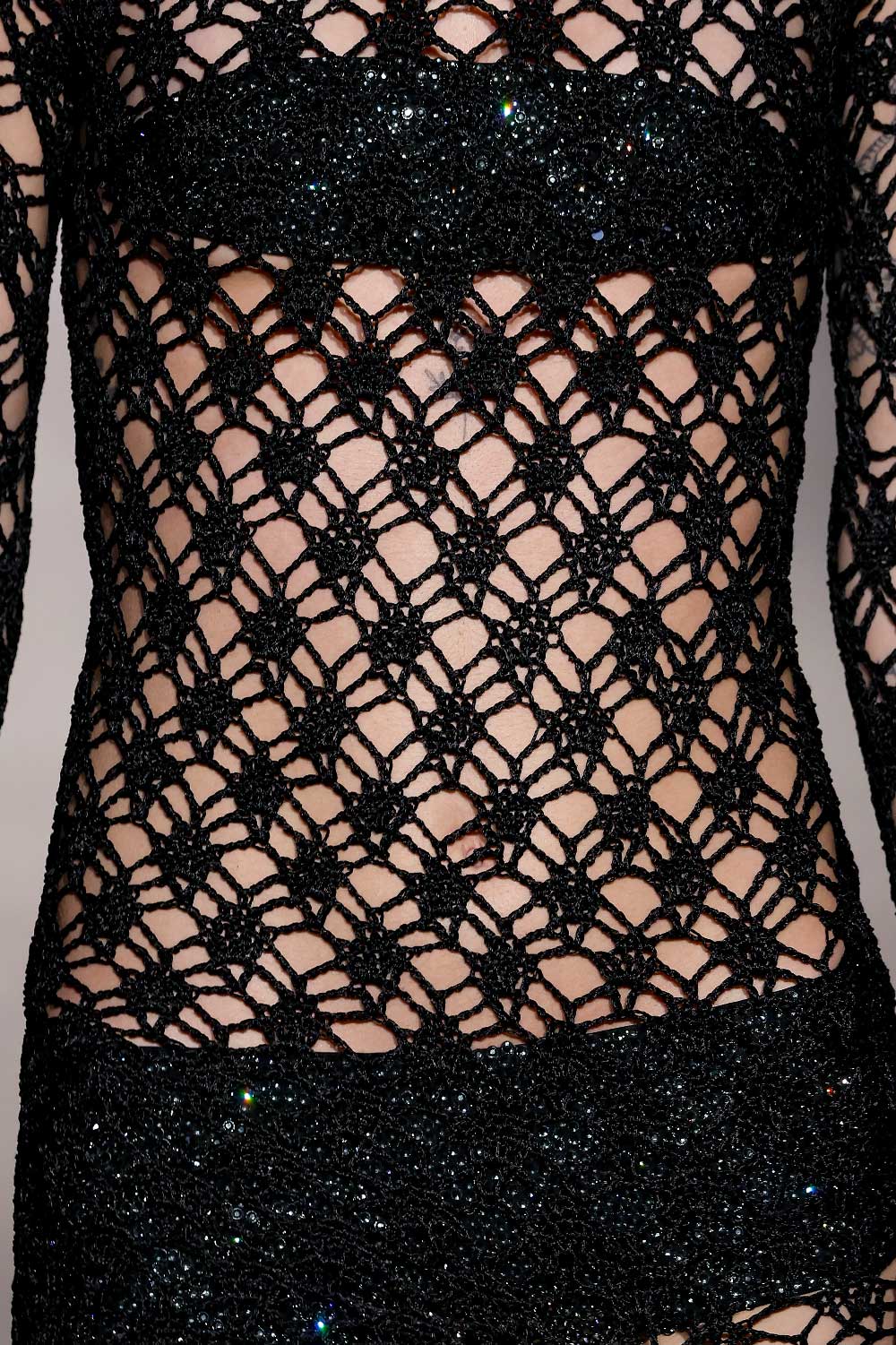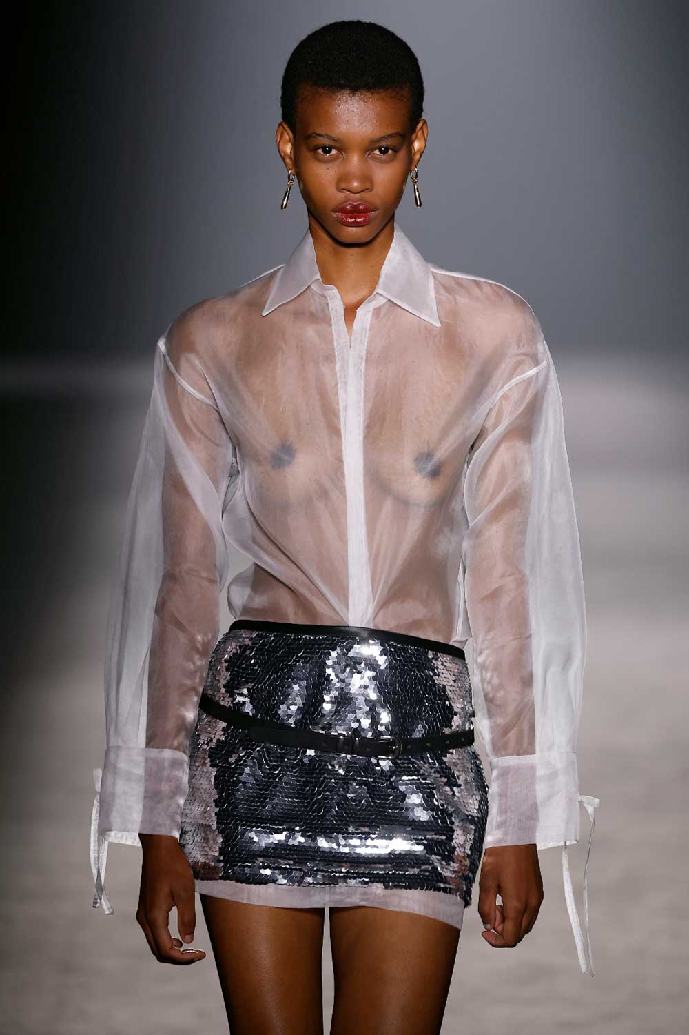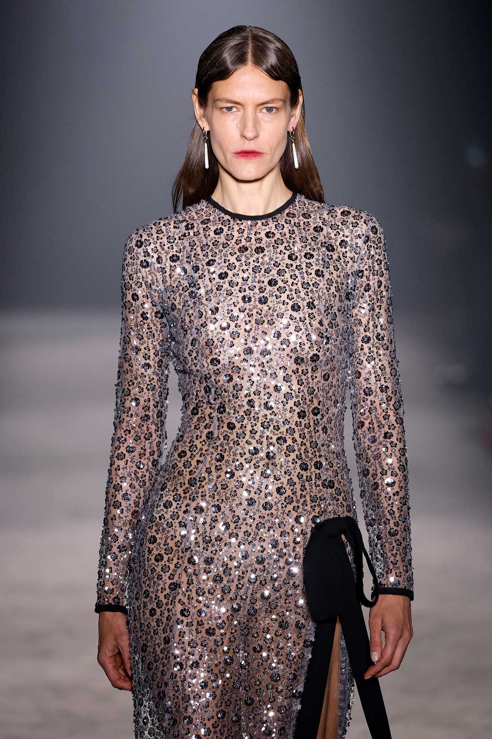 La verdad es que esa visión de la mujer poderosa es algo que nos encanta comunicar. Es por ello que en esta colección hemos intentado arriesgar con una versión más sensual. Específicamente, hemos trabajado con piezas más delicadas, como el año pasado ya introdujimos el encaje, y en 2024, habrás visto que está incluido el bordado con pedrería y paillettes. Ambos tejidos permiten un see through en las prendas, para dar ese punto más sensual.
