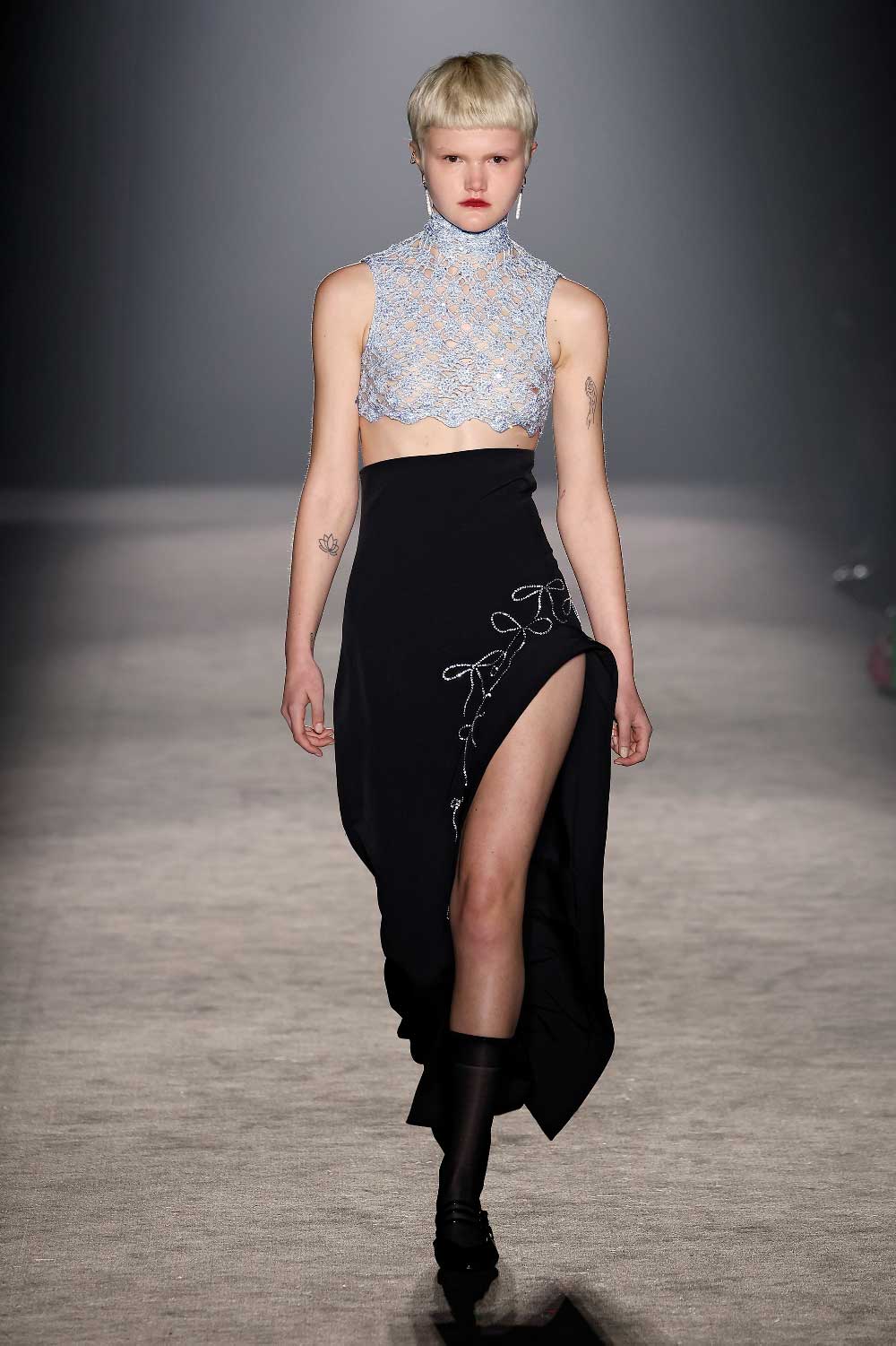Siempre nos hemos fijado en las historias o en los cuentos con una visión tradicional, eso sí, dando una vuelta. De esta forma, en esta colección también sucedió y aunque a veces, las últimas decisiones son tristes, eso conlleva una evolución personal. Todo esto que estoy describiendo, está en esta colección como una forma de entender el cambio, la liberación o la creación de una historia para romper moldes. En Happy Ending, para la edición 33ª de 080 Barcelona Fahion 2024, esto lo he trasmitido y está reflejado en ese momento del clímax de la historia, o en otras palabras, cuando llega el orgasmo, donde la sensación de satisfacción llega a su punto más alto.