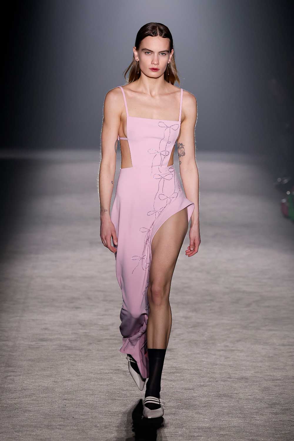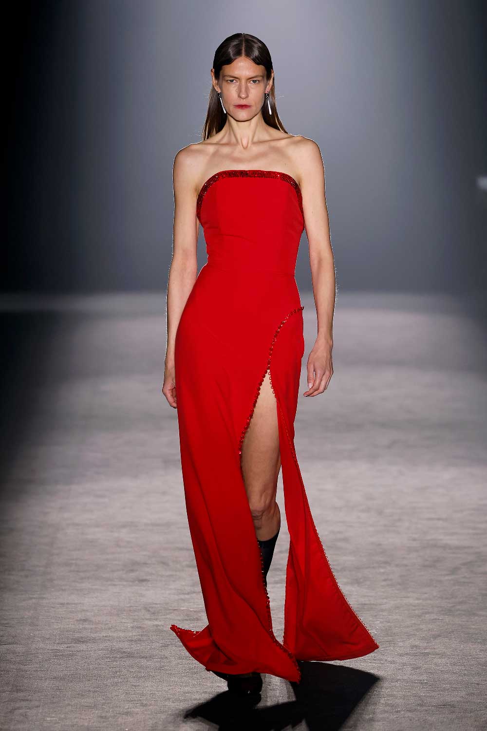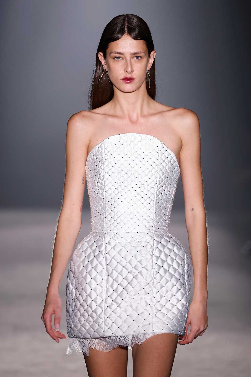 Compte Spain en 080 Barcelona Fashion 2024. Es la segunda vez que esta joven firma se sube a la plataforma catalana y lo hace con más sensualidad. Nos fliparon los acolchados hechos a mano.