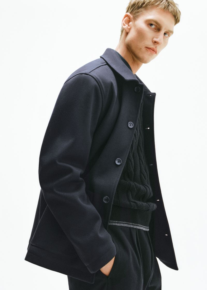 Para algo no tan serio, el look de oficina masculino de Mango adapta la camisa y la corbata con un toque más casual. En vez de llevar americana, podemos optar por una cazadora de inspiración workwear a juego con nuestro pantalón de pinzas y reinventar nosotros mismos el traje típico. O, podemos mantener la americana y sustituir la camisa por un polo tejido unicolor.