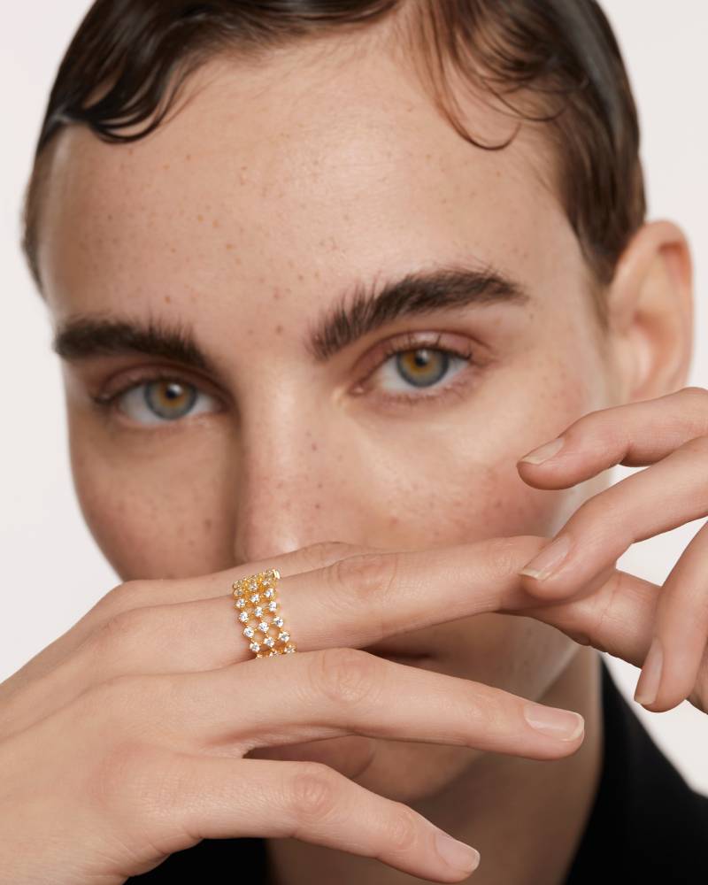 Anillo triple en plata bañado en oro con circonitas blancas de PdPaola