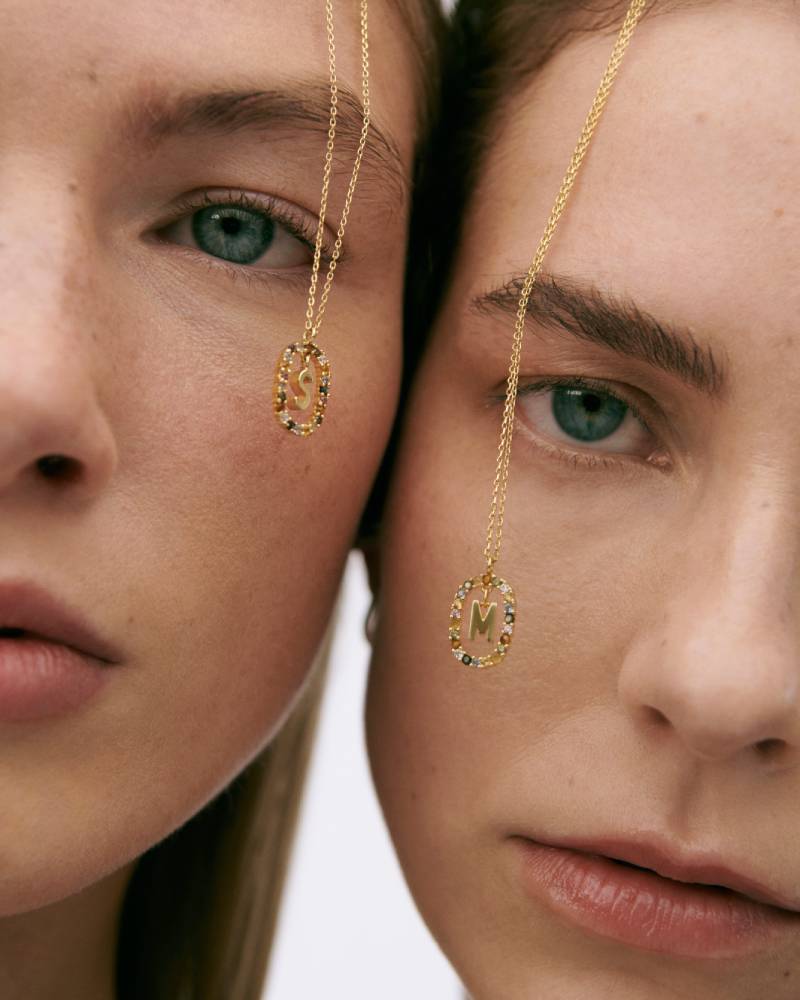 Collar de inicial en plata bañado en oro, rodeado de piedras de colores (PdPaola)