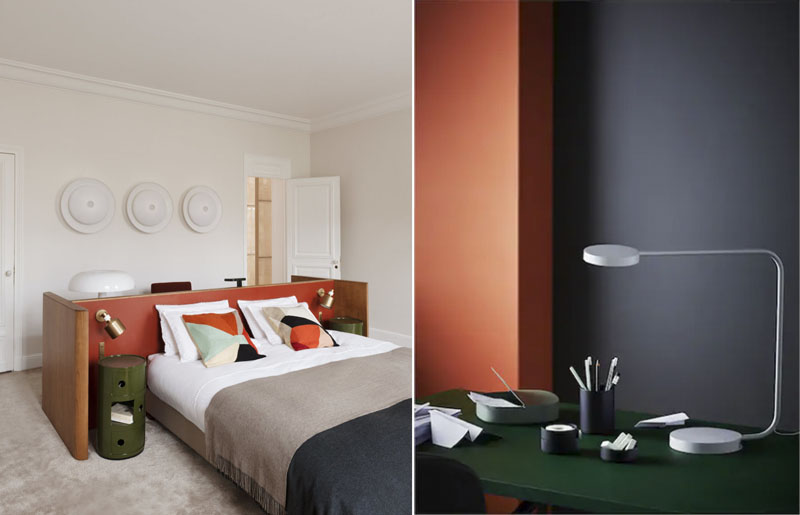 Imágenes superiores: A la izquierda un dormitorio donde la cabecera de la cama se convierte en un escritorio de trabajo. A la derecha: Es importante que las lámparas de mesa sean de luz Led, por el ahorro de energía, por la duración de la bombilla y por que casi no desprende calor. Un ejemplo Ypperlig de Ikea por 39,99€