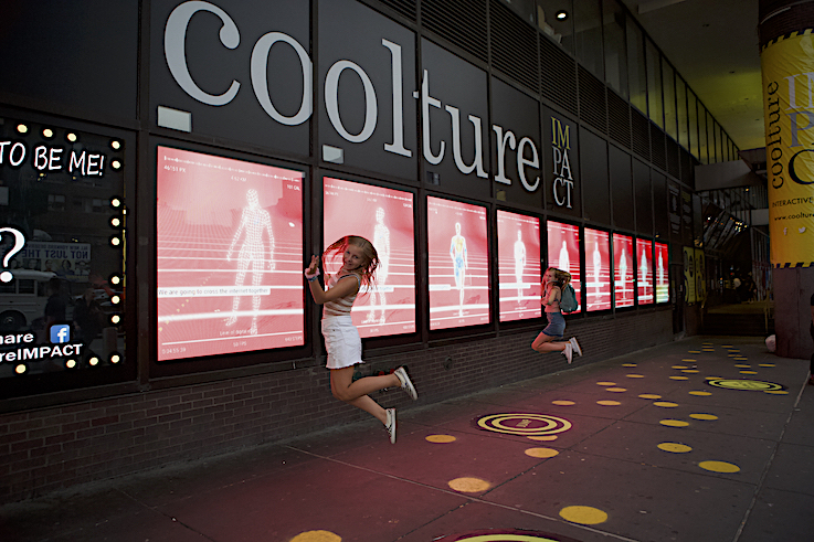 Casi 400.000 viandantes pasan diariamente por la esquina donde las enormes pantallas de Coolture Impact están situadas. Este verano sepuede disfrutar de la pieza The Runner V.2, basada en un corredor futurista, altamente sensible a los movimientos de la audiencia, quienes provocan que el personaje corra, salte y se llene de energía.