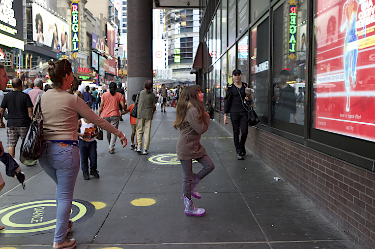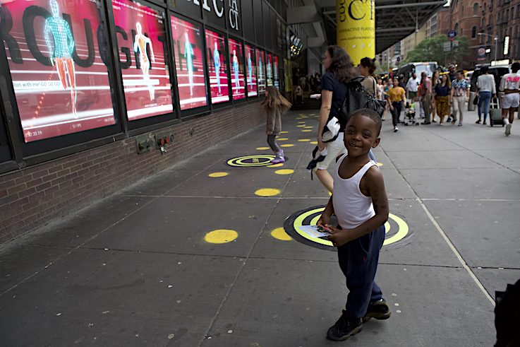 Si tienes la suerte de estar en Nueva York hasta finales de julio y pasas por delante de este gigantesco display, podrás ver The Runner V.2, una pieza creada por el artista español Solimán López.
