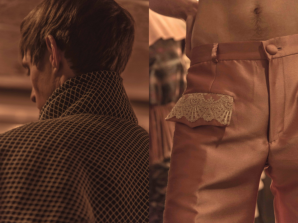 El telón está aún por abrir pero los príncipes ya están preparados para que empiece la temporada de caza. Coto Privado: Entre bambalinas, algunos nos escondemos mientras les empolvan la nariz a los modelos, y les enredan en capas de seda, satén y cintas de cuero vuelto. Anillas, tacones, algo de pluma. Colorete.