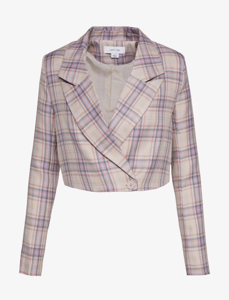 6. Lost Ink Check cropped blazer (27,49€) Otra de las tendencias que está arrasando son los tonos pastel. Los baby colors se han adueñado de muchos feeds de Instagram y de las novedades de tus marcas favoritas. ¿Hay algo más primaveral? Atrévete a combinarlos con esta americana checked print.