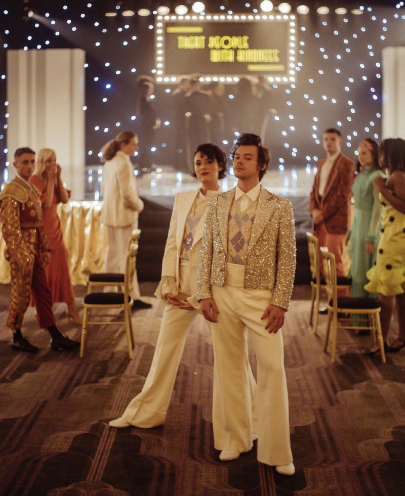 Harry Styles con una cropped blazer de lentejuelas via @harrystyles