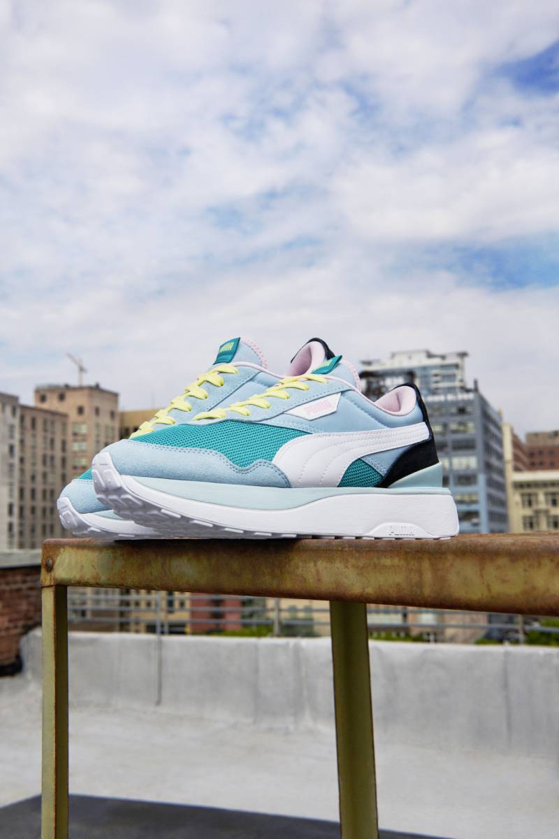 Las Cruise Rider son unas zapatillas de mujer diseñadas para dar grandes pasos. Este modelo supone un avance más con su divertida paleta de colores, una mezcla dinámica de materiales y una suela exagerada que tanto caracteriza a Puma. Esta zapatilla presenta una entresuela ligeramente más alta, una pieza de TPU en la parte posterior y lleva incorporada la espuma Rider para una máxima comodidad. Su parte superior es un mix de malla y nylon con superposiciones de suede en colores brillantes como verde azulado, amarillo brillante y una pizca de rosa, lo que le da un toque muy divertido al nuevo diseño.