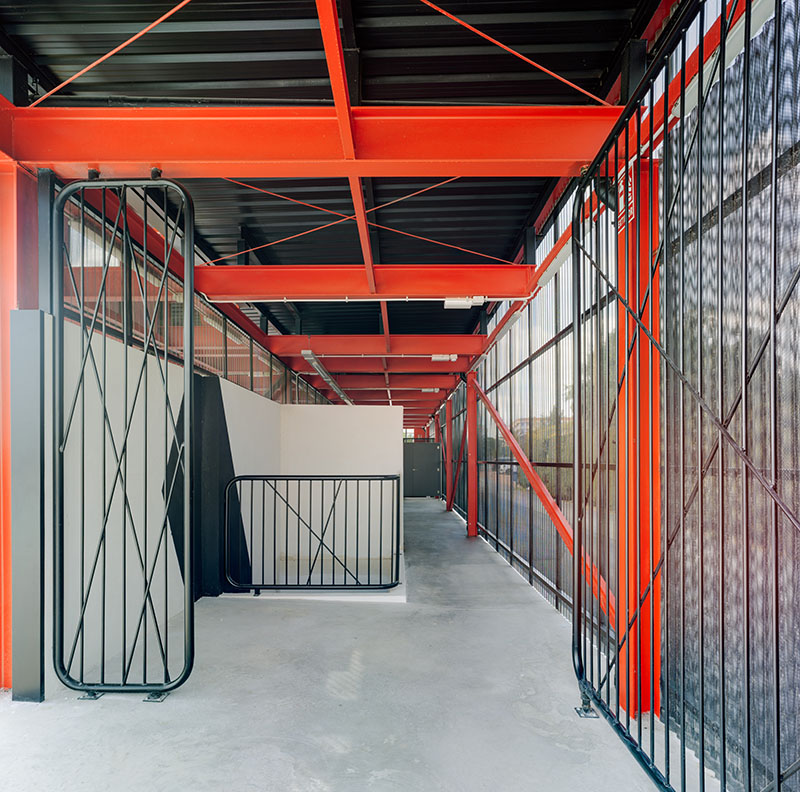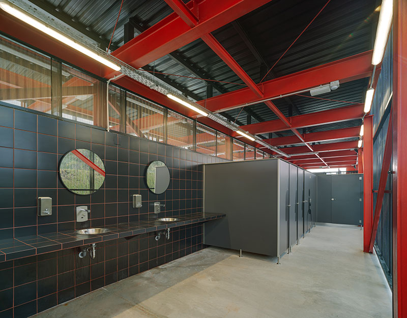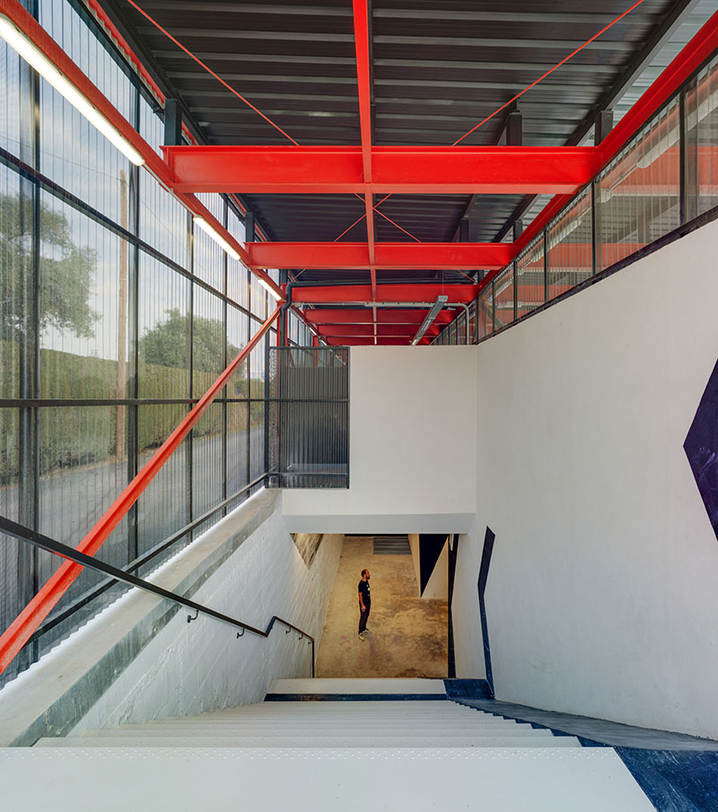 Se habilitaron los túneles que comunicaban el complejo con la zona central del velódromo, dejando desnudo el hormigón maltratado por el paso de los años. Los grafitis fueron seleccionados realizando un ejercicio curatorial y se trabajó sobre ellos mediante velos y capas de pintura con ilustraciones geométricas que funcionan como un nuevo grafiti propio cubriendo así parte de los espacios interiores.