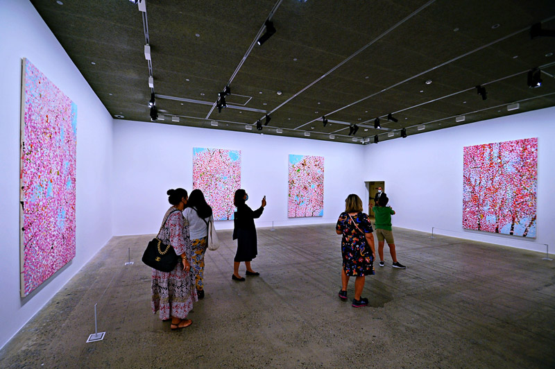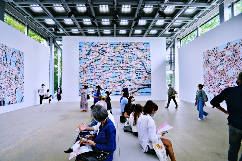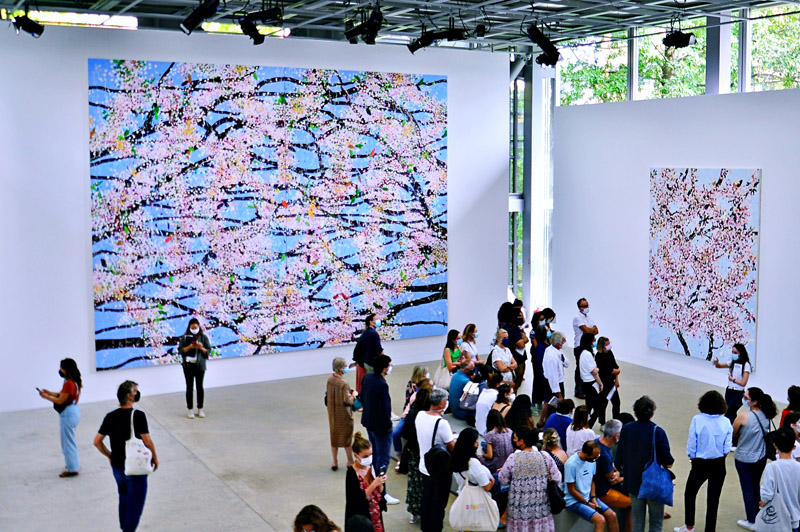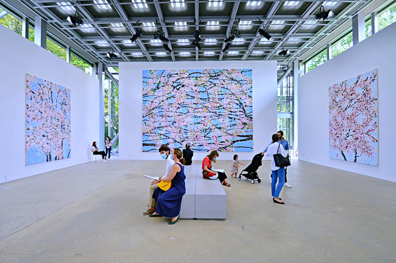La exposición Cherry Blossoms de Damien Hirst, presenta 30 cuadros elegidos por el artista entre los 107 lienzos de la serie, todos de gran formato. Esta última serie de pinturas supone la continuación de la investigación del artista del británico sobre la pintura. La escenografía es sobria por motu propio, sin comentarios, para dejar al visitante el placer de sumergirse en la pintura. Cherry Blossoms es la primera exposición de Hirst en un museo en Francia.
