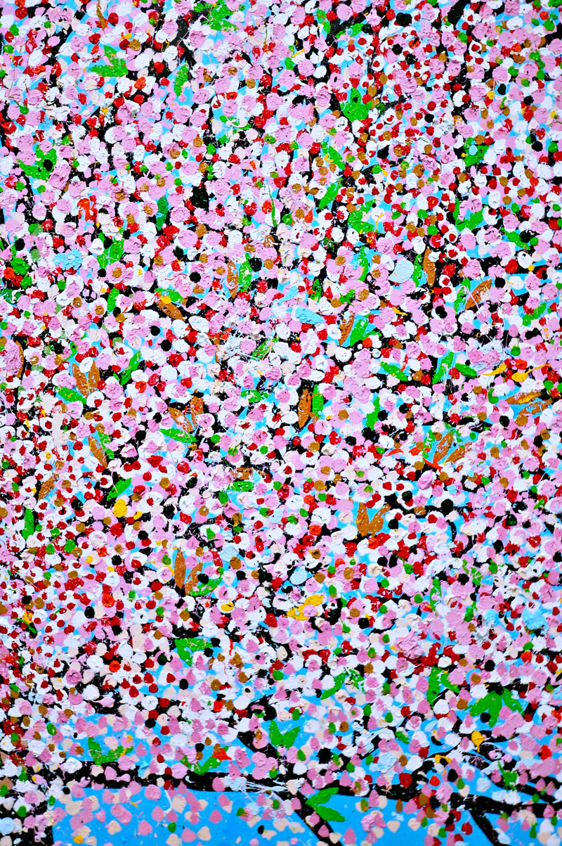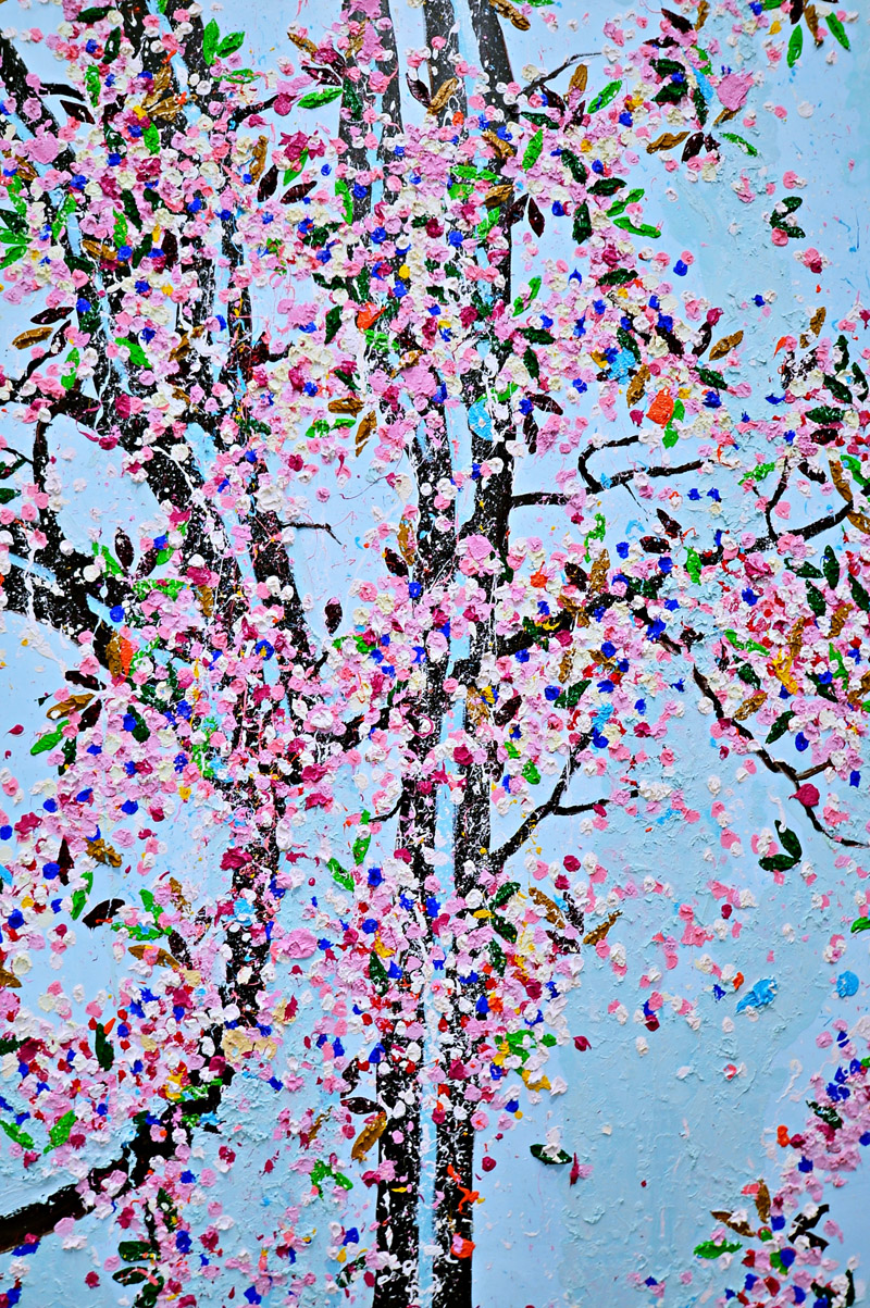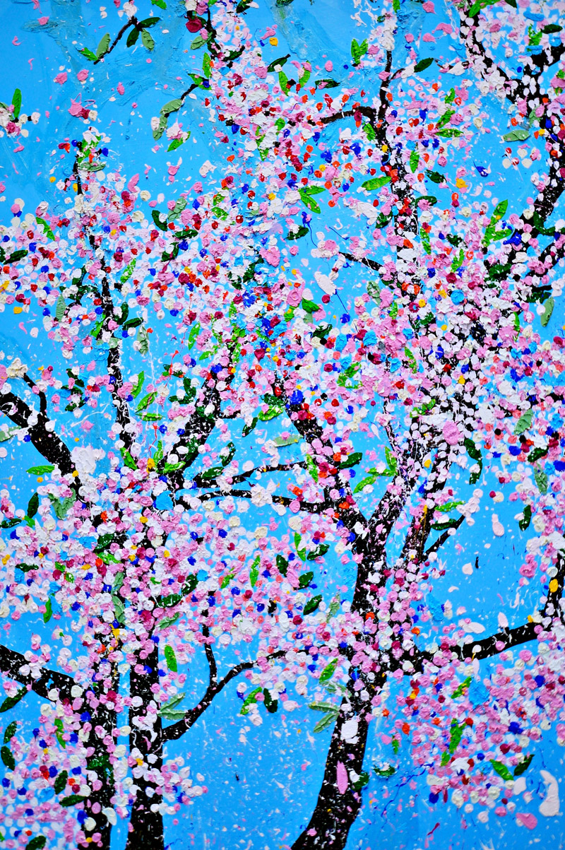 Iniciada tras un ambicioso proyecto de escultura, Treasures from the Wreck of the Unbelievable, que tardó diez años en realizar, la serie Cherry Blossoms marca el regreso del artista al trabajo solitario en su estudio, al que también ha dedicado tres años completos. Con ellas Hirst redescubre el estimulante placer de pintar, se sumerge en los cuadros. Trabaja en varios lienzos al mismo tiempo, volviendo constantemente a ellos incluso después de su finalización. Damien Hirst Cherry Blossoms fueron finalizados durante el año de la pandemia, a finales de 2020. Como todos, Hirst paso mucho tiempo encerrado, así que la pandemia le ha permitido más tiempo para vivir con los cuadros.