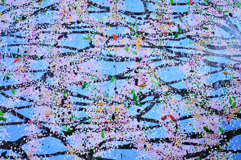 Cherry Blossoms de Damien Hirst, reinterpreta, con lúdica ironía, el tema tradicional de la pintura de paisaje, así como los grandes movimientos artísticos de finales del siglo XIX y del XX, desde el impresionismo hasta la action painting de Pollocks. El enfant terrible del arte contemporáneo inglés, Damien Hirst, nació en Bristol (Reino Unido) en 1965. Creció en Leeds antes de trasladarse a Londres en 1984, donde sigue viviendo actualmente.