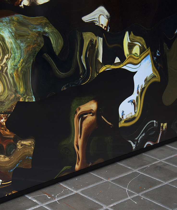 Mit Borrás: Me alegra que menciones a Bauman porque creo que es evidente esta conexión. Cuando el filósofo habla de que las cosas ya no son fijas ni seguras, que todo es inestable y cambiante, flexible y precario se pueden percibir las relaciones que tiene con los soportes que utilizas y el modo en que formalizas tus piezas usando pantallas dobladas, imágenes digitales, líquidas, derretidas y en constante cambio, como en Ripple 2016, Ooze 2017, Draft, 2017, Pulse 2018, Amalgama, 2019, o Aqueous 2019.
