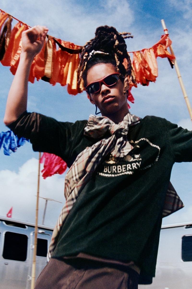 Ahora bien, la campaña festivalera de Burberry para verano no es solo un juego de visuals; también es una guía de estilo. Con prendas de sus nuevas colecciones, Daniel Lee nos da una guía completísima de looks para festivales de Burberry donde el clásico armario inglés se enriquece a través de estilos y actitudes más relajadas y un toque de high street. Y, por supuesto, el Nova Check es protagonista de estos conjuntos.
