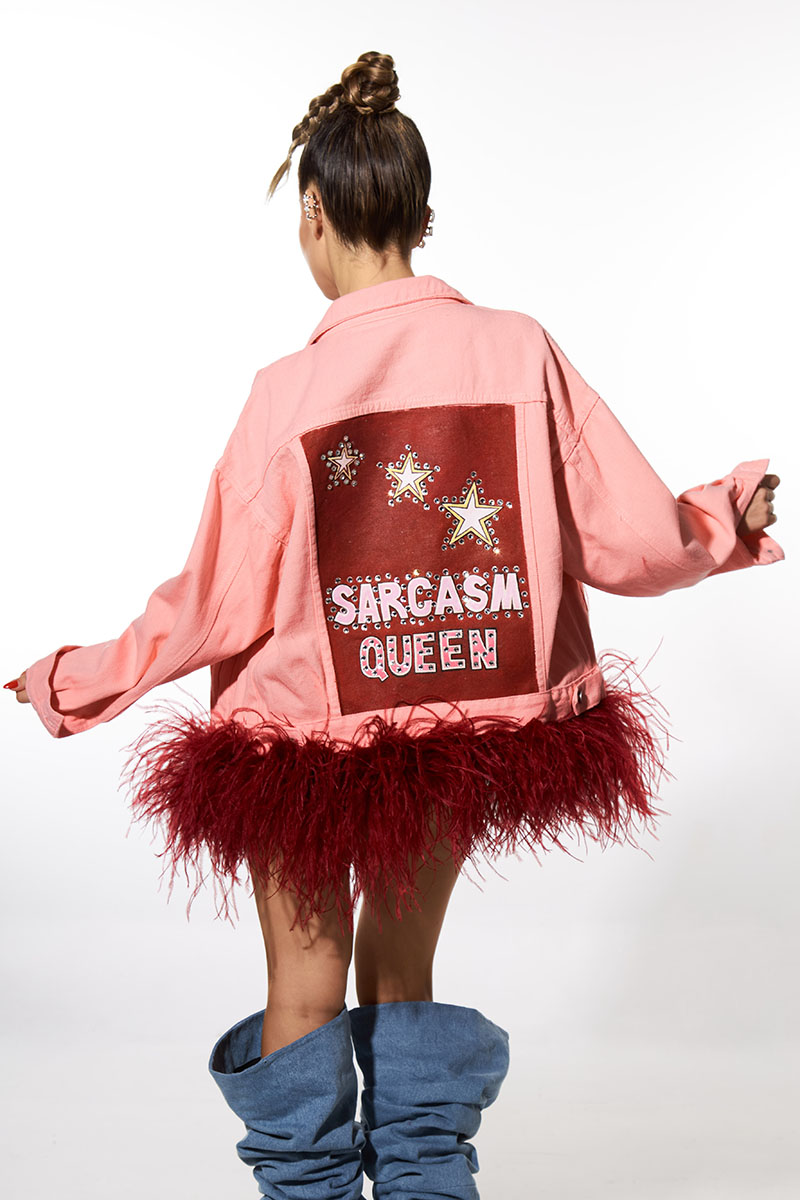Y para las que huyen de los básicos, tenemos estas pedazo de cazadoras con estampados muy aesthetic y sus características plumas de avestruz. Otra pieza muy top para elevar tus outfits.