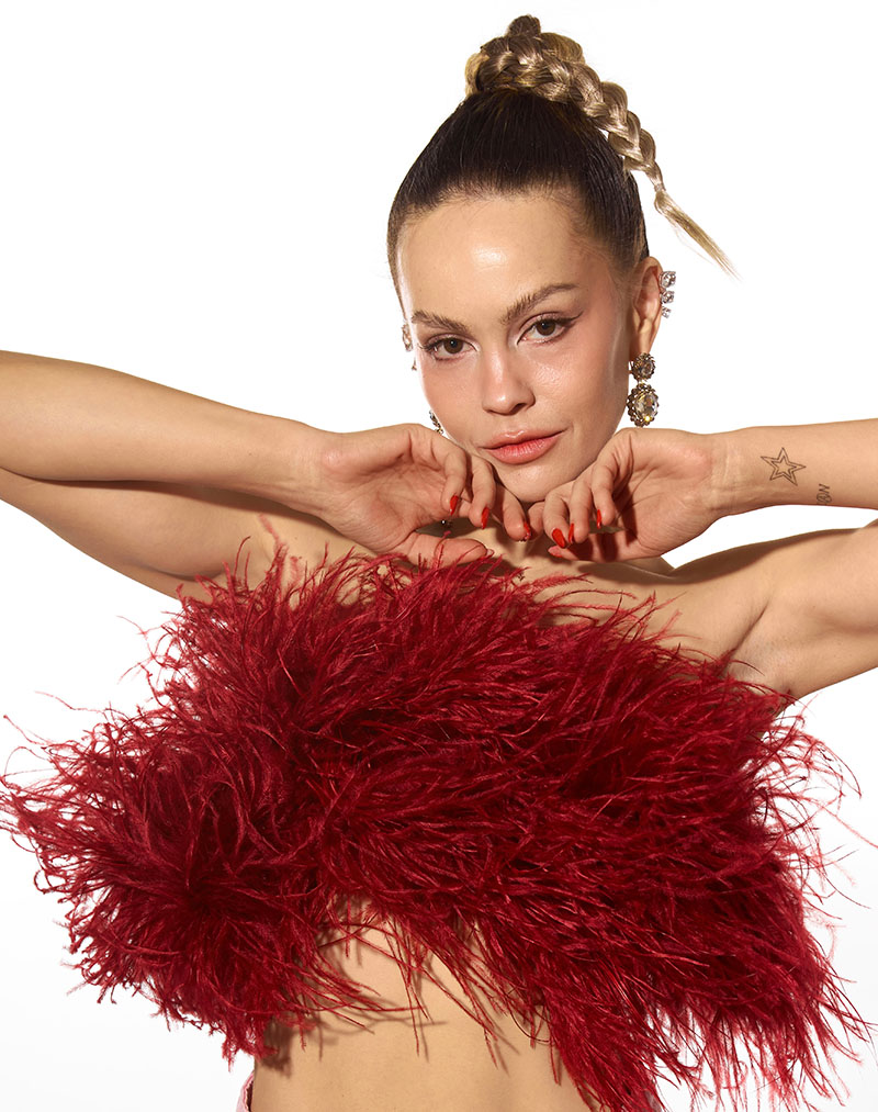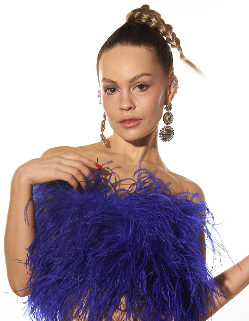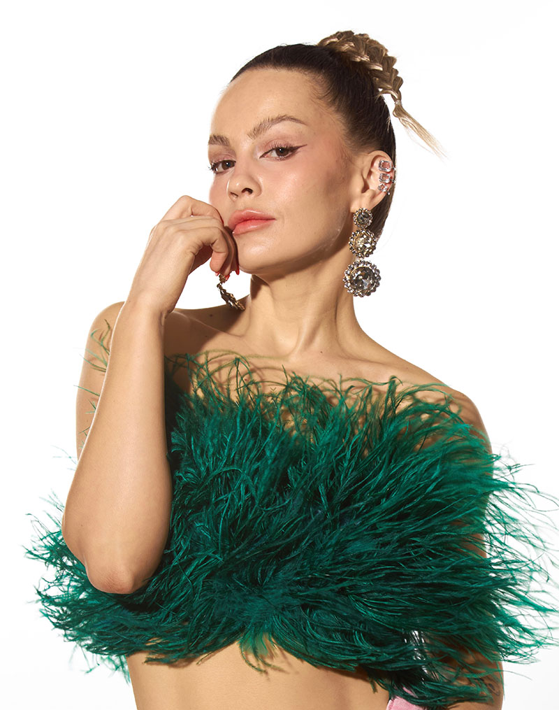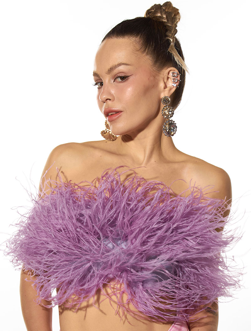 La colección incluye prendas para cualquier momento del día. Desde una mañana en la que te apetezca ir con más rollo, hasta tu look de fiesta más atrevido. Porque sí, amiga, tienen los tops perfectos para salir a comerte la noche. Cubiertos enteros en plumas de avestruz, puedes encontrarlos de un montón de colores distintos que son espectaculares.