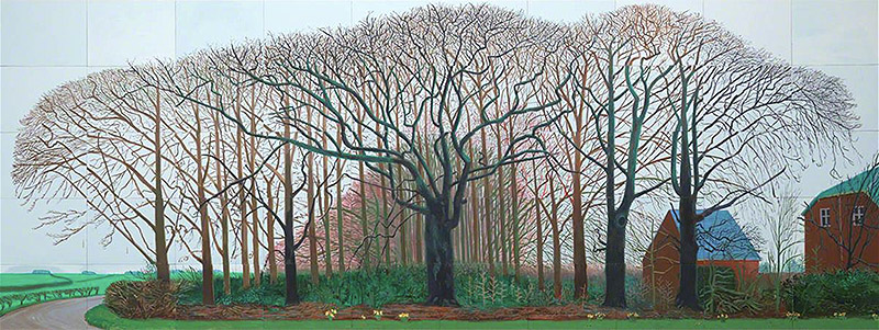 En la década de 1980, la naturaleza se convierte en un tema central en la obra de Hockney, como se refleja en A Bigger Gran Canyon (1988). A partir de ese momento, el artista se traslada a Europa, donde continua explorando paisajes cotidianos, como los de Normandía y Yorkshire. Este periodo constituye el núcleo central de la exposición, donde se destacan algunas de las obras más recientes, como May Blossom on the Roman Road (2009), que celebra la llegada de la primavera.
