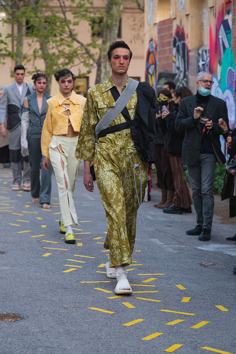 El evento se celebró en dos naves del espacio Hangar de Barcelona y un espacio exterior en el que montaron una pasarela en la que admirar las propuestas de las jóvenes creativas. Este evento híbrido permitía disfrutar de las colecciones a través de la pantalla de la sala expositiva, en la que se proyectaron los fashion films; sobre maniquís en un laberinto diseñado con tules y a través de los sketchbooks de los proyectos expuestos.