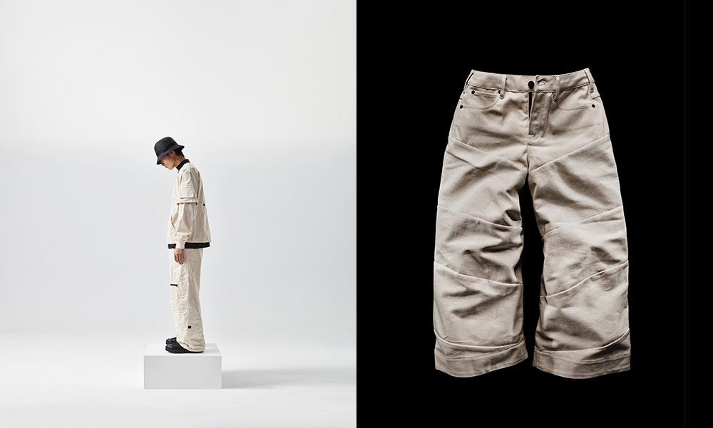 Cada temporada, Raw Research lanza una nueva construcción de denim 3D, y la pieza de esta temporada son los jeans Spiraq. Cuidadosamente moldeados para ofrecer el ajuste 3D perfecto, los Spiraq están diseñados para envolver la pierna. A diferencia de los jeans que usan dos piezas de denim cosidas entre sí por los laterales, los Spiraq se confeccionan a partir de una sola pieza de denim que envuelve la pierna con un diseño en espiral. Esta exclusiva técnica de construcción de prendas es el ejemplo perfecto de cómo la colección Raw Research III pretende desafiar los límites del diseño del denim 3D.