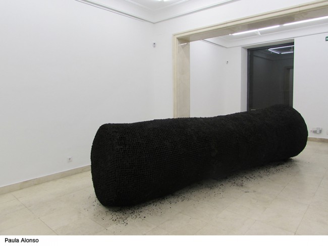 Muy cerca de la anterior se encuentra la “Galería Paula Alonso”, en la calle Lope de Vega 29. Desde el exterior podemos ya contemplar la pieza de Rodríguez Méndez construida a partir de una gran malla metálica y turba. Se presenta como un gran agujero negro que concentra toda la energía de la sala. Si caminamos unos metros al fondo podremos descubrir la huella, en forma de fotografía de de otra de la piezas de la exposición “Romper uma palavra e pasar”.