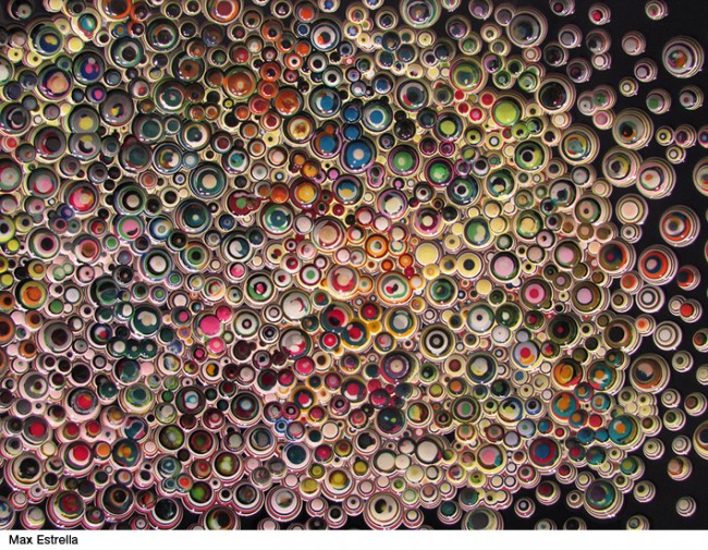 Seguimos de nuevo caminando hacia el Norte hasta llegar a los límites de la calle Barquillo, en este caso en la calle Santo Tome 6. La “Galería Max Estrella” nos recibe escondida al fondo de un portal kitsch. Con “THEGRASSISALWAYSGREENER“ nos adentramos en el mundo de color del artista alemán Markus Linnenbrink. Nos recibe su site-specifics, que parece continuar el recorrido iniciado unos metros antes en las puertas del edifico de viviendas. Se trata de un espacio que trabaja con las tres dimensiones al igual que sus obras de resina epoxi, que unen estratos de color de forma arqueológica.