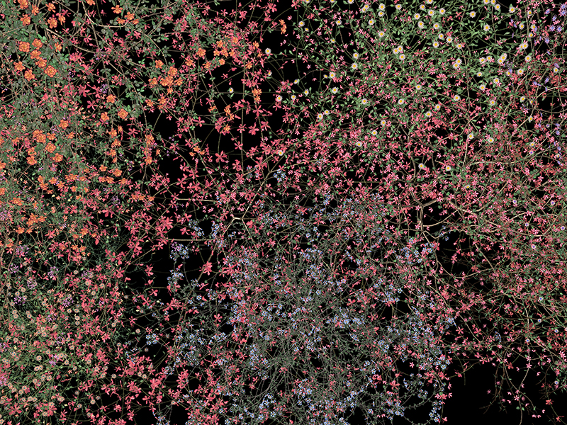 “Marie Curie” (2011) es un homenaje a la famosa científica, y amante de la botánica, con dos Premios Nobel por su investigación en el mundo de la radioactividad. En esta obra, Steinkamp renderiza más de cuarenta tipos de flores. Con ello, la artista no solo rinde homenaje a la eminente científica, también nos pone los pelos de punta con los efectos de la energía atómica y las explosiones sobre la naturaleza.