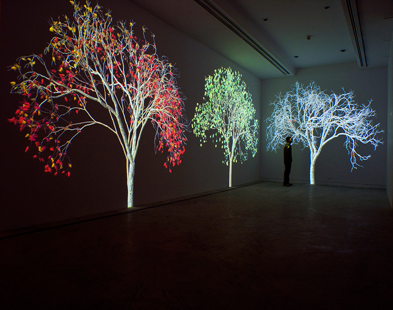 Por otro lado, “Dervish” (2004) se inspira en la danza hipnótica de los sacerdotes Mevlavi del Islam, recreado el movimiento de las ramas de lo árboles. Es la forma que tiene Jennifer Steinkamp de hablarnos del poder de naturaleza sobre el ser humano, llegando a provocar estados de exaltación con solo contemplarla. Una sublimación de los sentidos asociada a la liberación del alma y la comunión con lo divino.