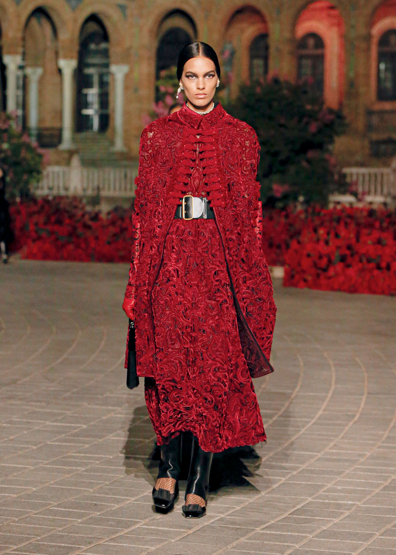 Y así es como fue el desfile de Dior en Sevilla: un homenaje a la artesanía y saber-hacer de la indumentaria andaluza tradicional. Y como se tenía que hacer por todo lo alto, Dior vistió de rosas y claveles la Plaza de España del parque de María Luisa con rosas y claveles rojos… para que no se nos olvide que la Maison estaba de visita.