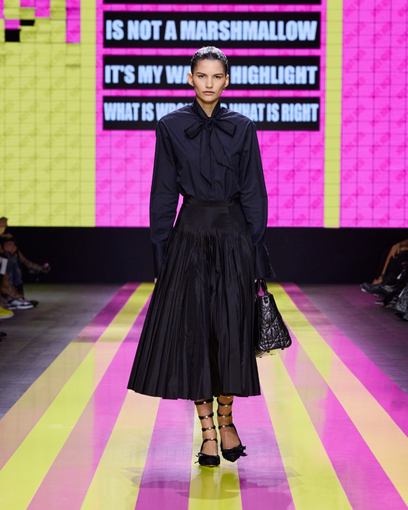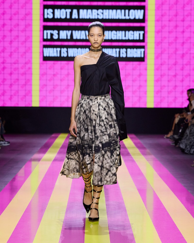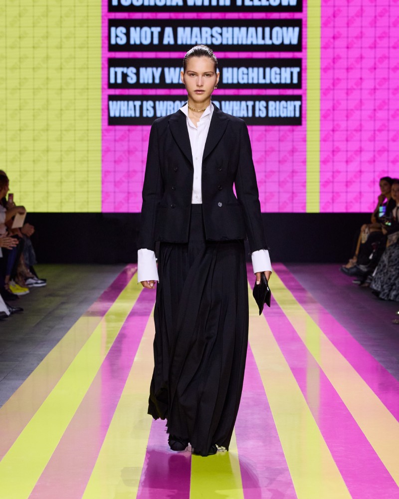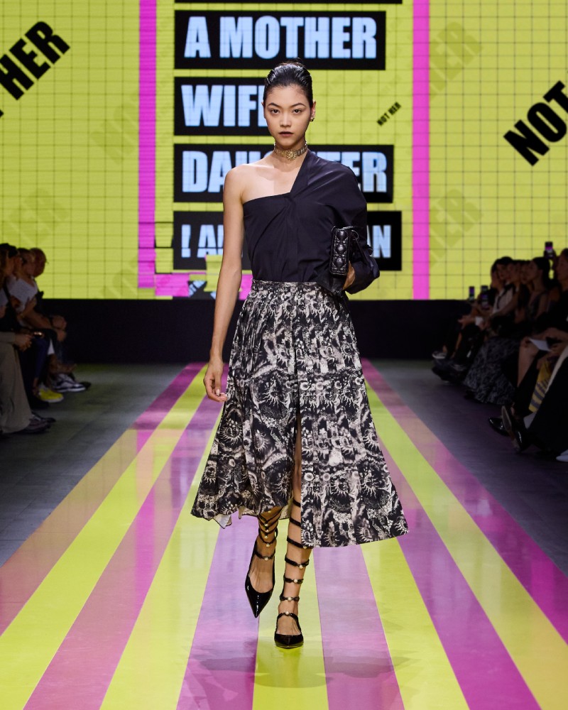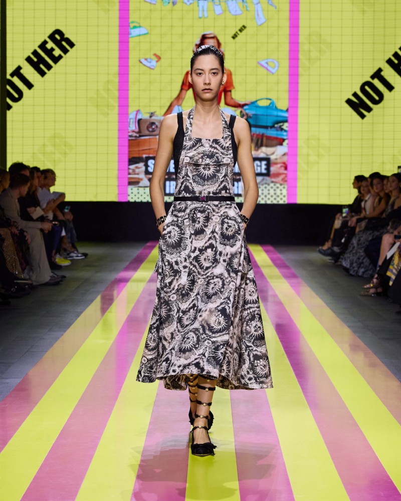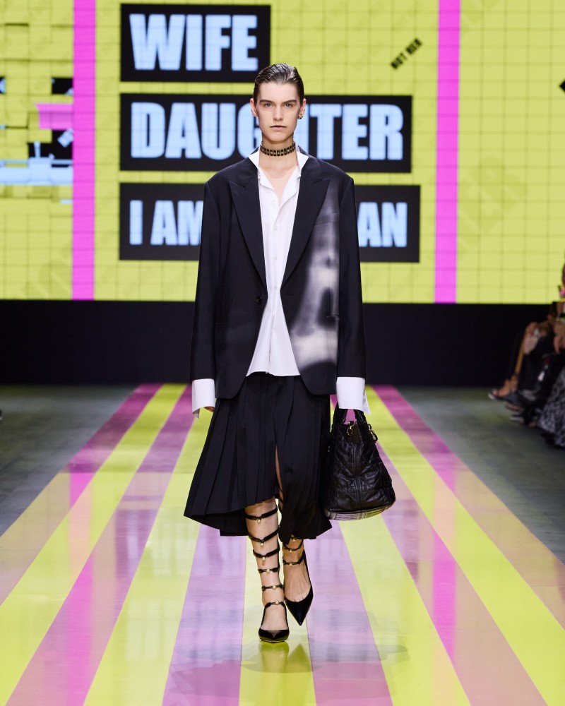 Dior Primavera-Verano 2024se aleja mucho del estilo comedido y sobrio del que estamos acostumbrados a ver en colecciones de Maria Grazia Chiuri. La colección profundiza su discurso de exploración sobre el feminismo y la feminidad planteando una reflexión sobre el presente. Un presente en el cual el pasado y el futuro coexisten en al mismo tiempo. Sumado a esto, se añade la idea de que la moda tiene la función (y la responsabilidad) de ser una herramienta de liberación y autodescubrimiento para la mujer, sirviéndola como un medio para descubrir su valor individual.