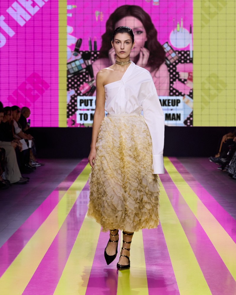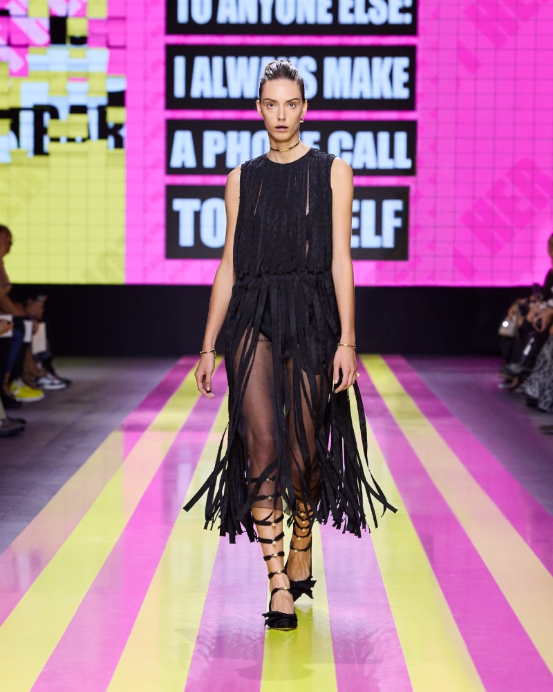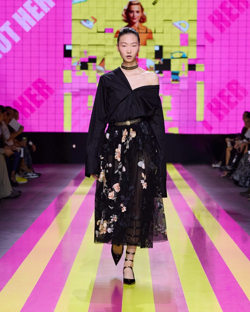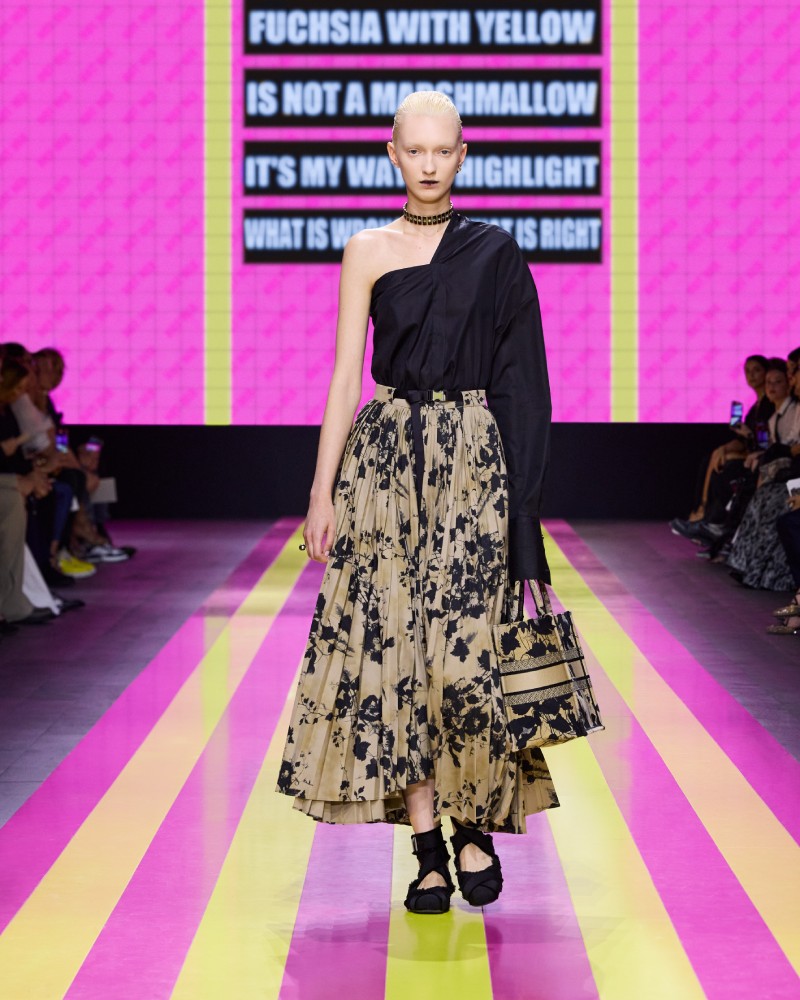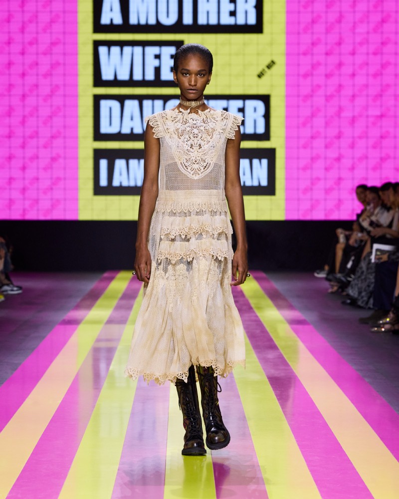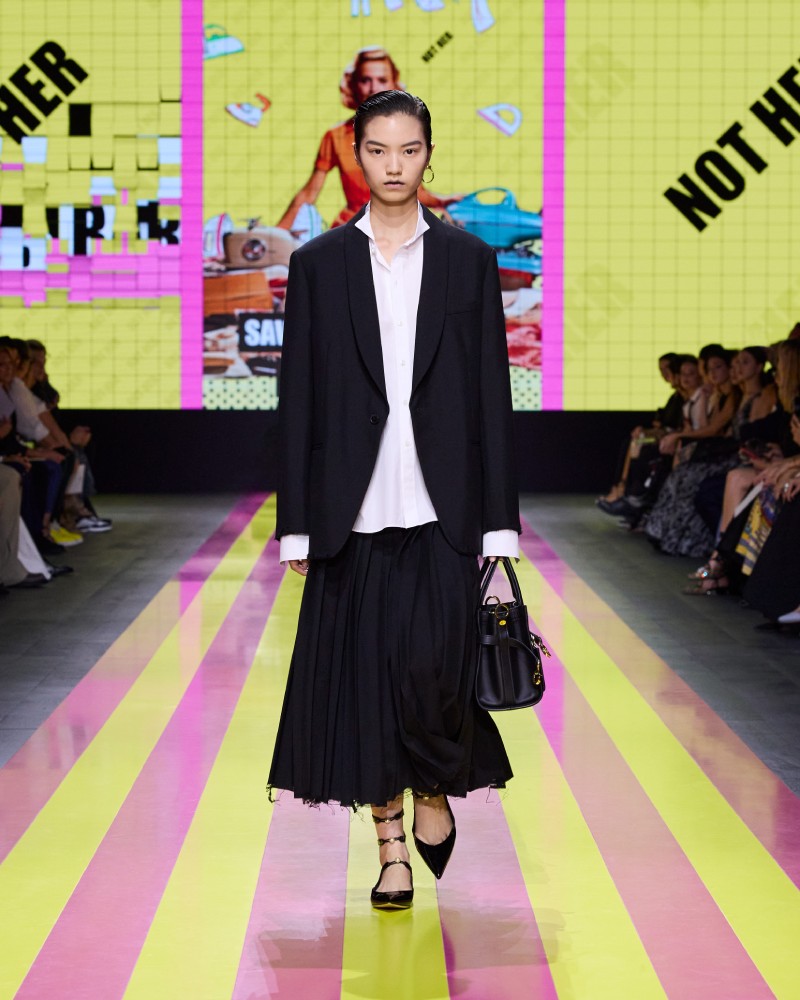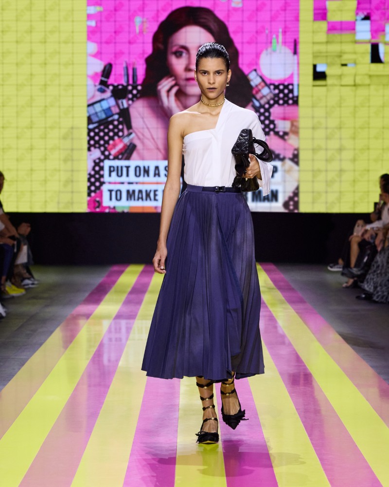 Dior Primavera-Verano 2024se aleja mucho del estilo comedido y sobrio del que estamos acostumbrados a ver en colecciones de Maria Grazia Chiuri. La colección profundiza su discurso de exploración sobre el feminismo y la feminidad planteando una reflexión sobre el presente. Un presente en el cual el pasado y el futuro coexisten en al mismo tiempo. Sumado a esto, se añade la idea de que la moda tiene la función (y la responsabilidad) de ser una herramienta de liberación y autodescubrimiento para la mujer, sirviéndola como un medio para descubrir su valor individual.