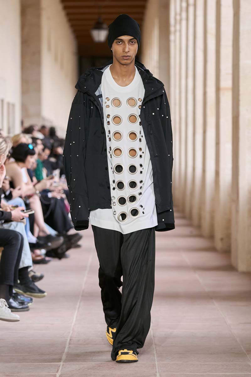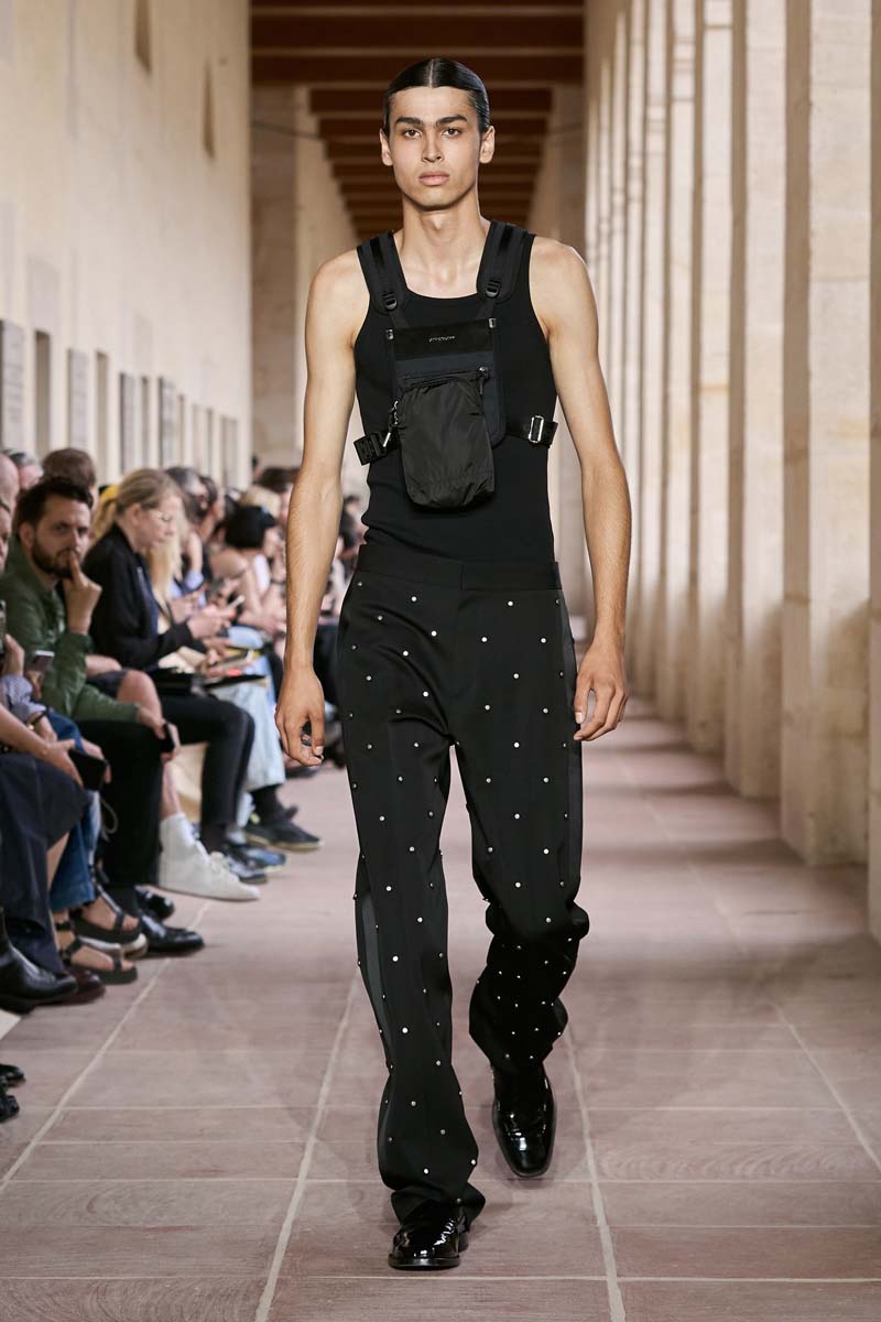 El arquetipo del Givenchy Gentleman fue un hito en la historia del armario clásico masculino. Compuesto por un traje perfectamente cortado (bajo estándares de estilo del momento) y un je ne sais quoi tan especial, este concepto fue primordial para la maison. Ahora, tantísimos años después, Matthew M Williams toma estos parámetros y los recodifica con el lenguaje de high street que tanto nos gusta ver en su firma 1017 Alyx 9SM.
