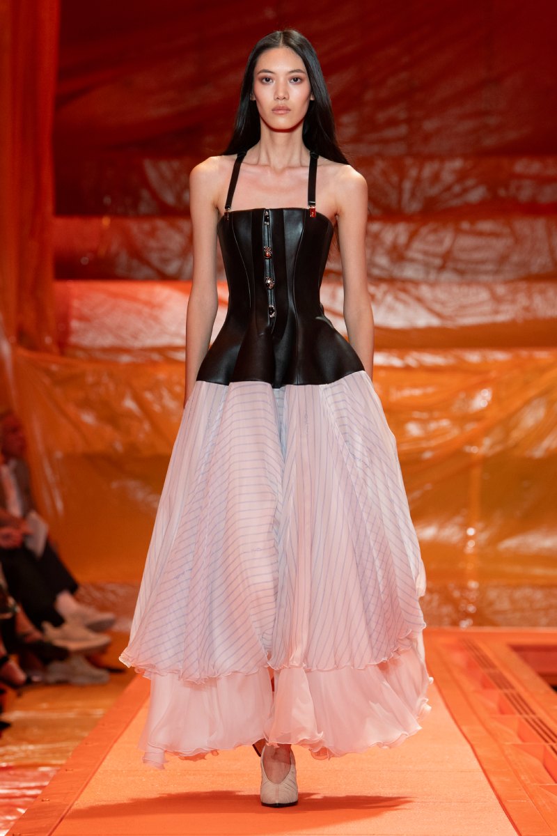 Como punto más sofisticado, los conjuntos de sastrería se reimaginan con nuevos aires e influencias que van desde los 50 a los 80… no busquéis americanas tradicionales, la mezcla de tantas cosas deja atrás todas las concepciones que teníamos hasta ahora. Como contrapunto, prendas más provocadoras se ponen en gran valor: boustiers rígidos y blusas con hombros al aire y mucho drapeo.