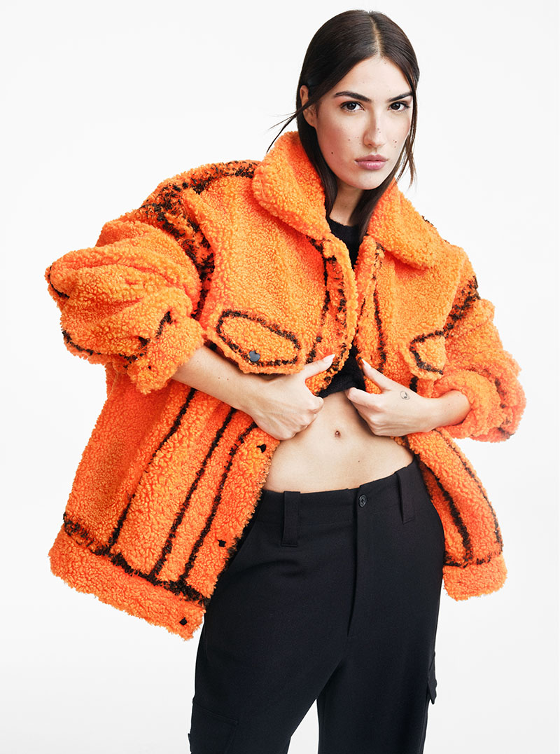 La cantante y compositora moldava radicada en Londres Patricia Manfield se queda con dos modelos de chaqueta. En concreto la chaqueta naranja de borreguito y con líneas pintadas a mano porque según la artista “funciona mezclada con otras prendas en negro” y otro modelo estilo puffer acolchado con mangas desmontables en un vibrante tono plateado.