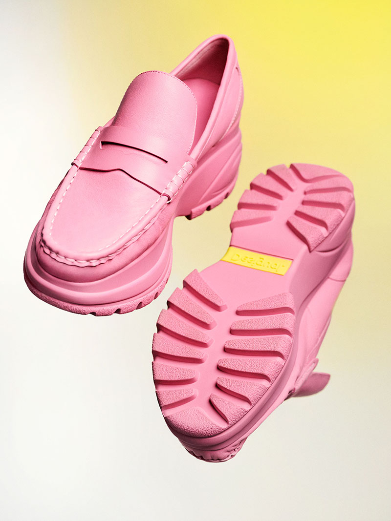 Por muy adaptable que la colabo de Desigual X Maitrepierre sea al streetwear el calzado nos dice que exploremos una ruta nueva. En vez de unas zapatillas la colección ofrece unos mocasines de suela chunky de estilo clásico a la vez que vanguardista… ah, y son muy rosas, por cierto.