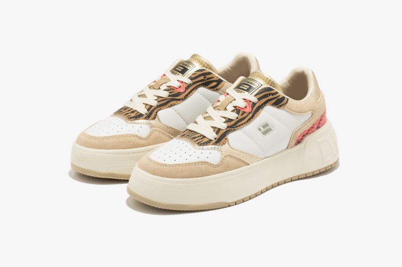 Otra de las tendencias de sneakers 2025 que veremos con más fuerza es el uso del animal print. Ya lo vimos en 2024 en el terreno de los bolsos y los pantalones; por lo que era solo cuestión de tiempo que estos estampados migraran a nuestras zapatillas. Para que tengamos esos pares más statement, D.Franklin reinventa sus Court con colorways de blanco y beige con paneles en combinación de estampados. Sí, hay de cebra… pero también de serpiente (y todo en una misma silueta).