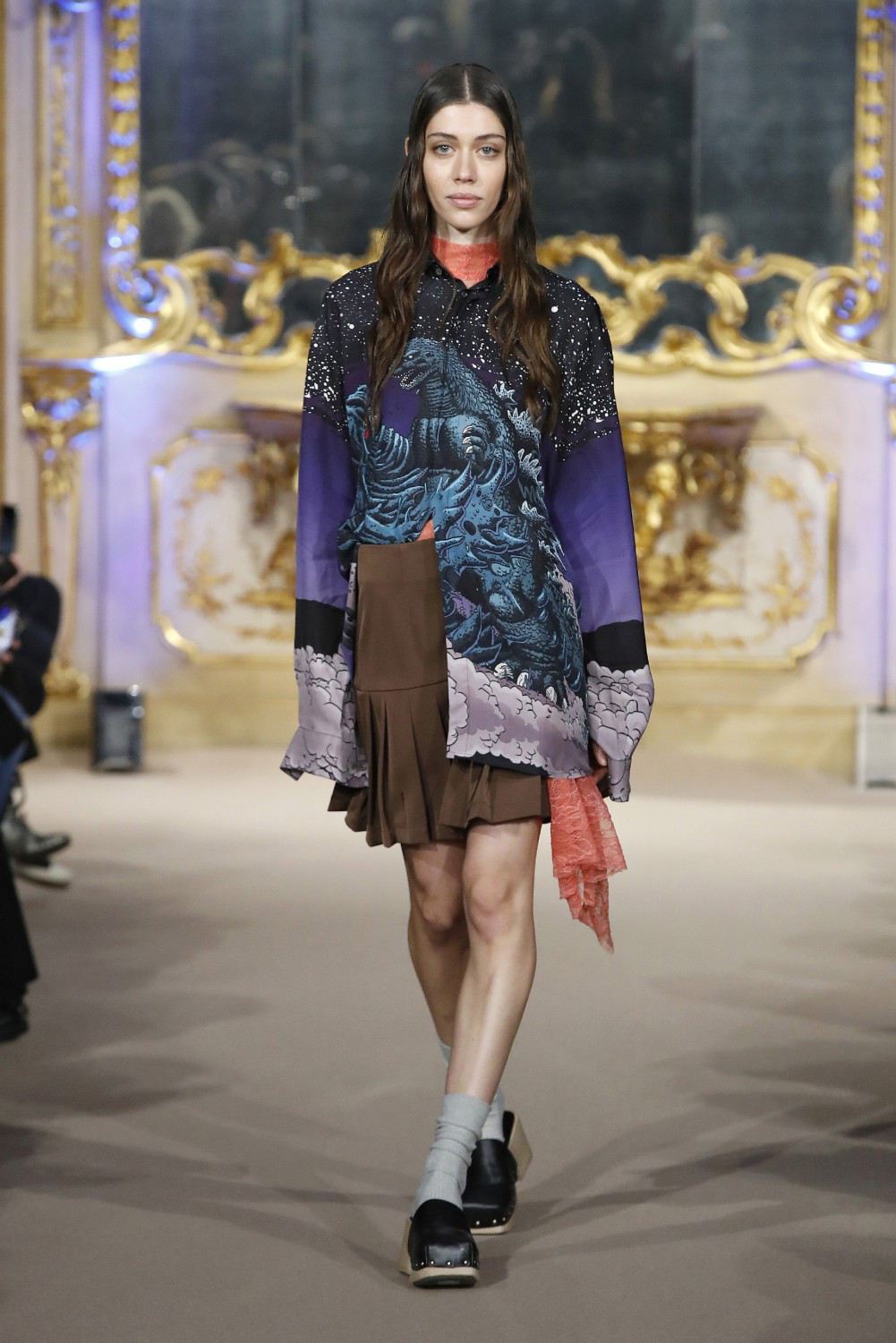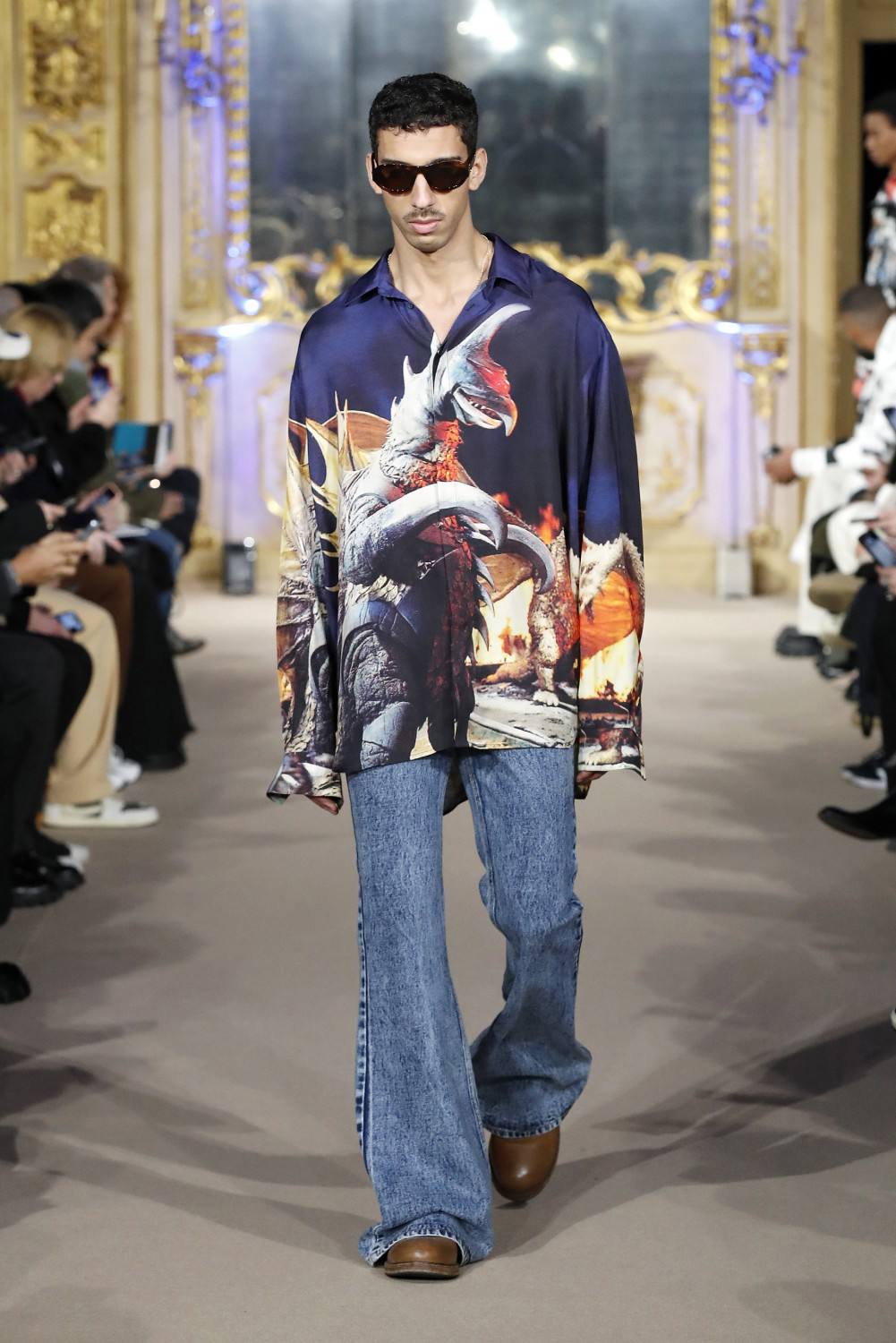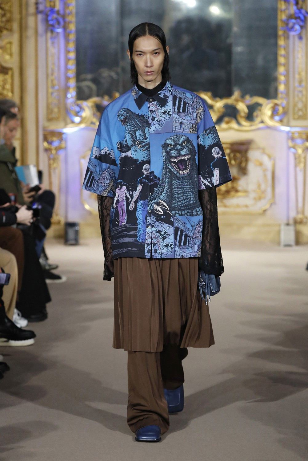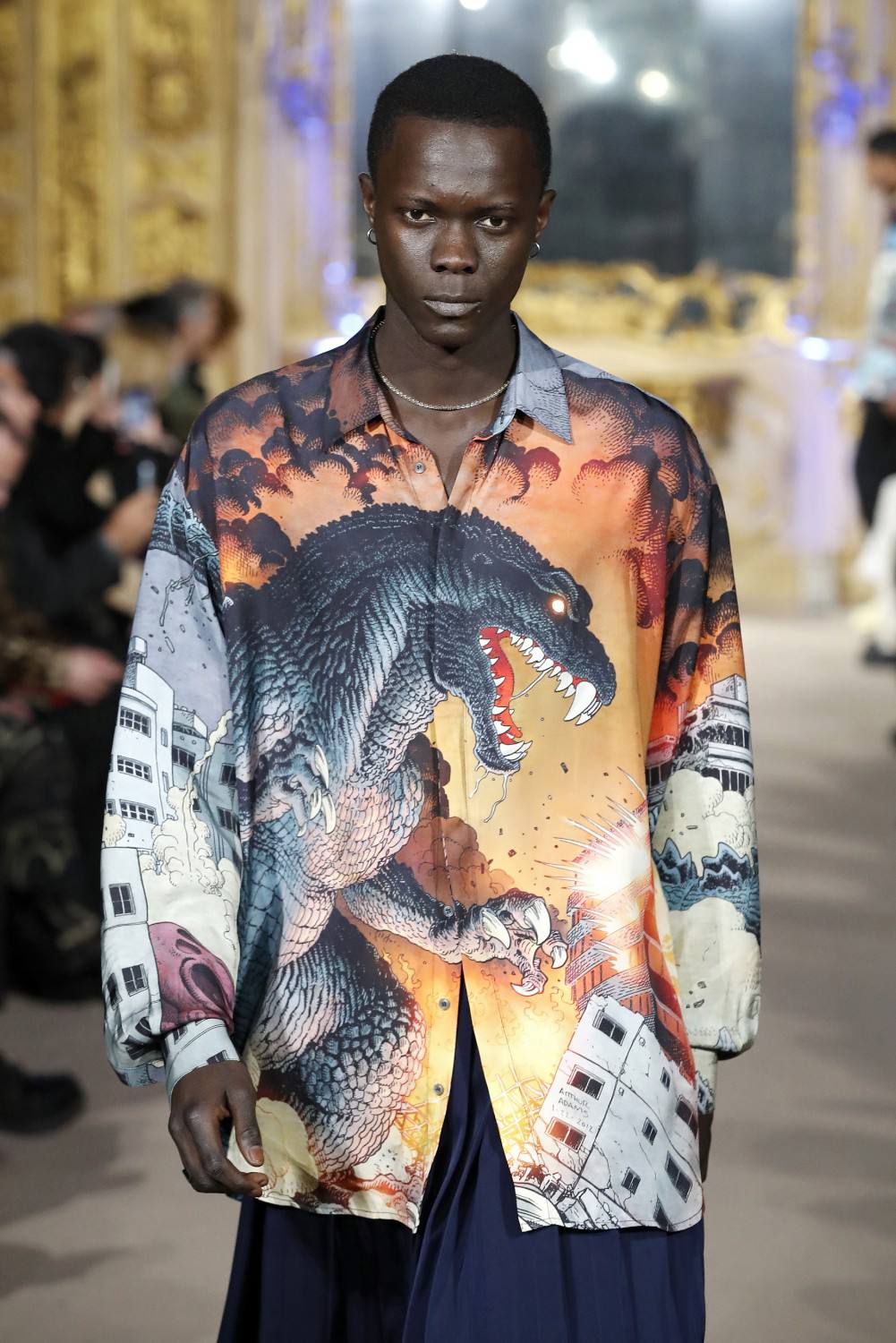 Godzilla nace en Japón como un monstruo de película en los años 50 del siglo XX. Sus creadores lo idearon como un símbolo de la bomba atómica que Estados Unidos lanzó en Hiroshima durante la Segunda Guerra Mundial. Adaptado en los años 90 por Estados Unidos, hoy en día no solo es un género en sí mismo, sino un icono de la cultura pop contemporánea. Y hoy regresa más de moda que nunca como un print de la colección unisex otoño invierno 2023-24 de la marca india Dhruv Kapoor.