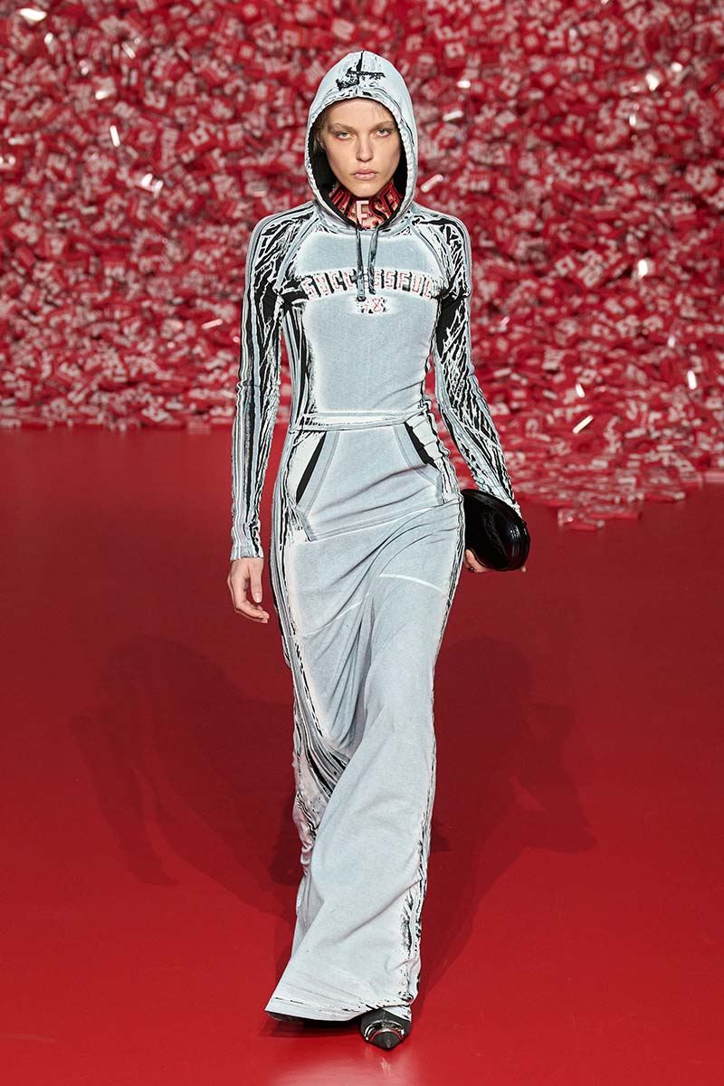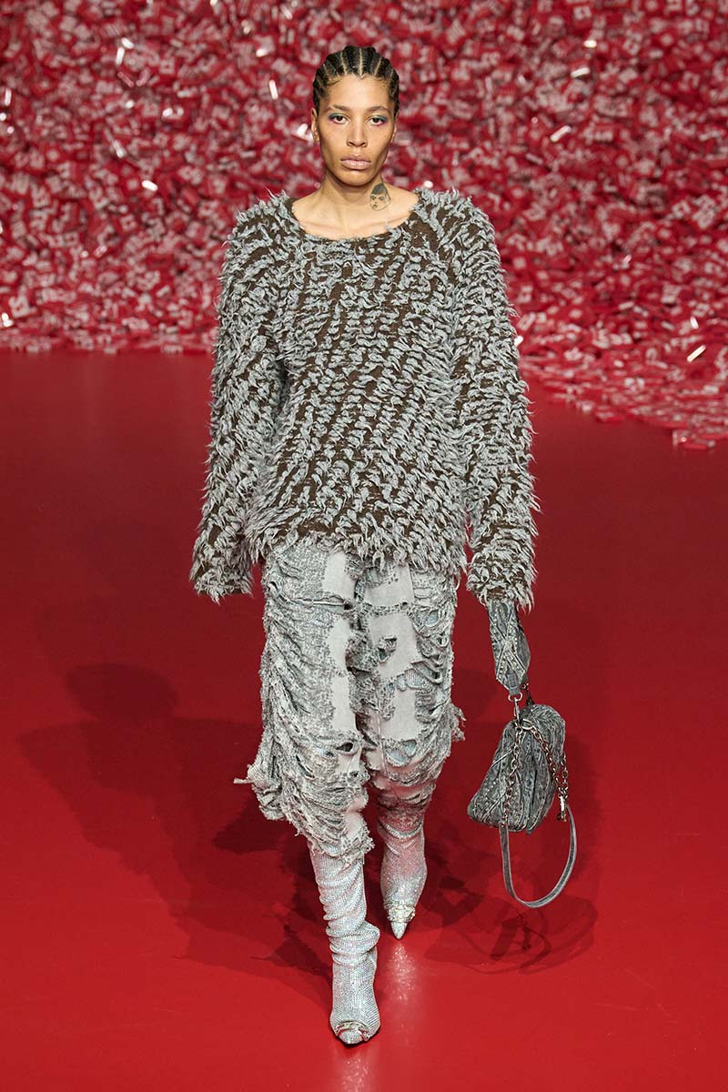 La colección de Diesel FW23 nos muestra un lado aún más atrevido y arriesgado de la marca, donde todo se lleva al extremo a través de nuevos tratamientos para denim, juegos e interacciones de proporciones y estampados y acabados. Todo muy sexy; todo muy refrescante. ¿Qué decir de esta colección? En una sinfonía compuesta por elementos duros de la moda urbana y nuevas propuestas, más “delicadas” encontramos algo para todos. Diesel FW23 mantiene la esencia urbana de la marca, pero se aventura hacia terrenos de nueva opulencia, con el faux fur como punto de apoyo.