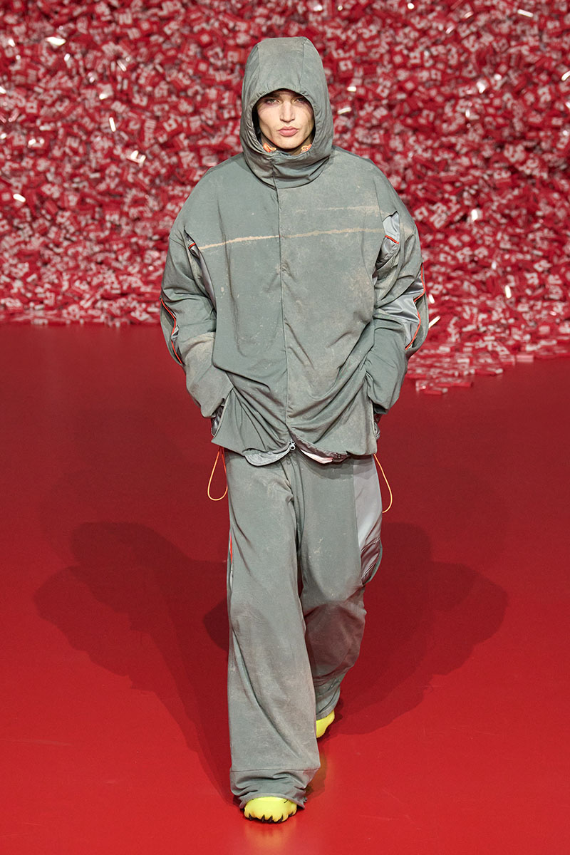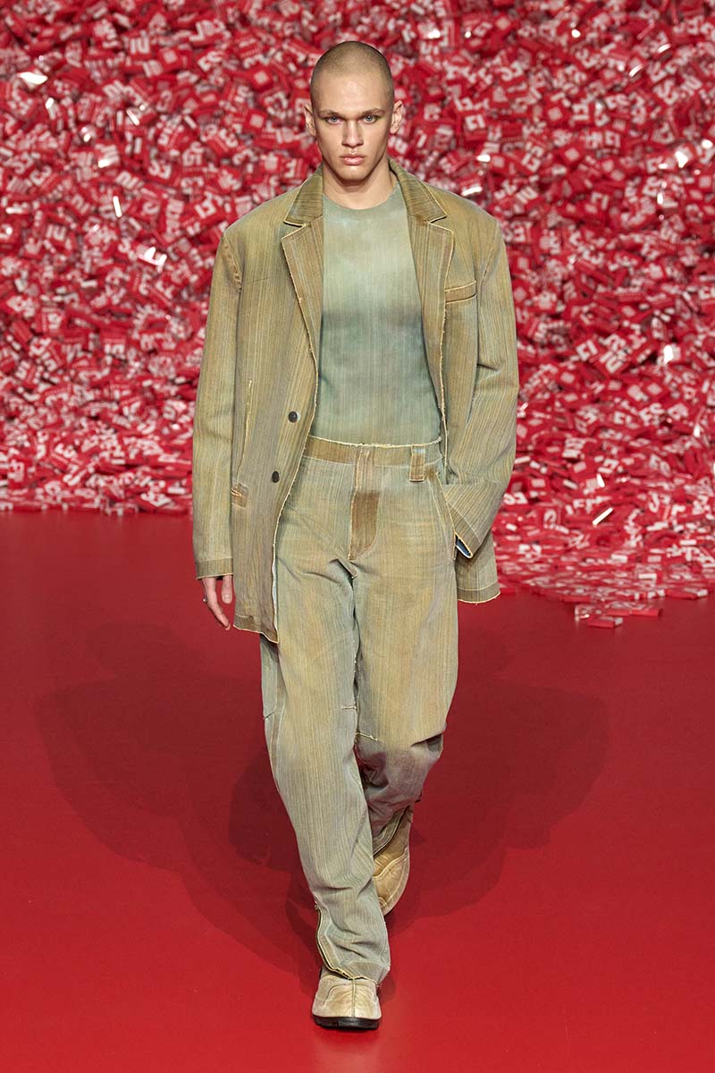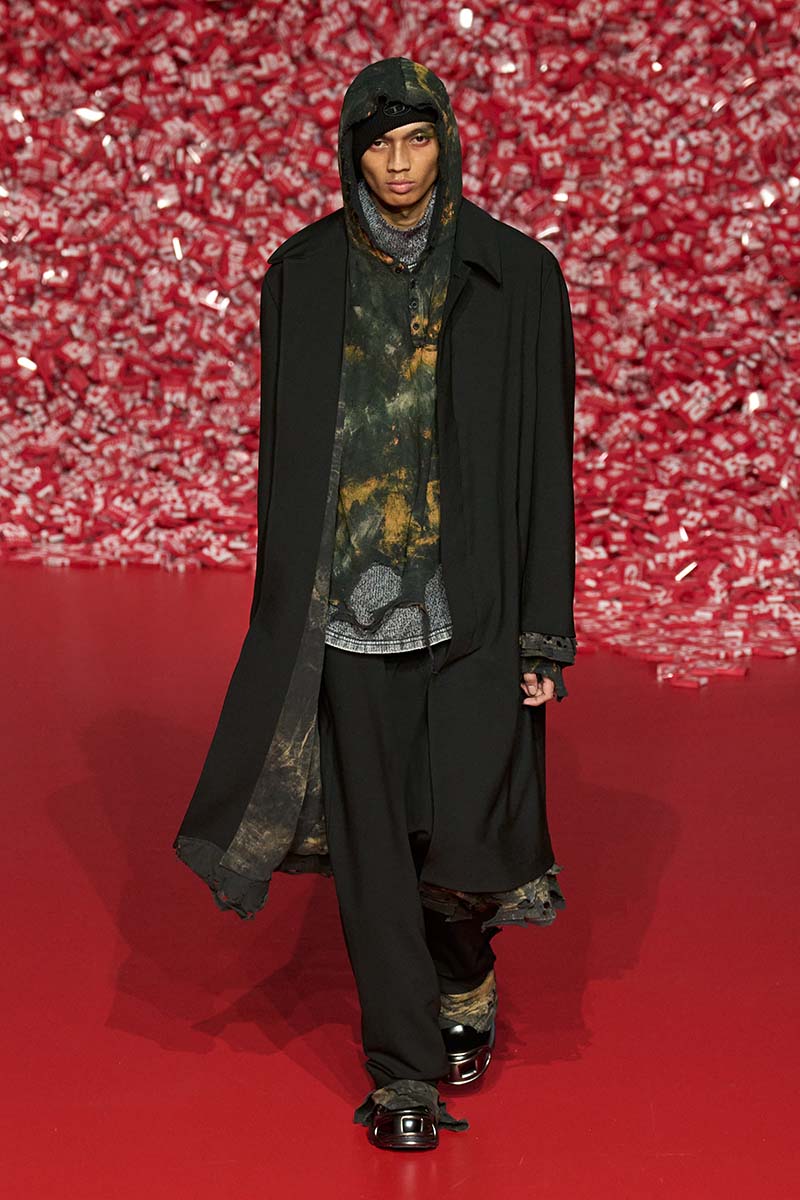 Glenn Martens hace un juego espectacular de volúmenes para Diesel FW23 en el que vemos un diálogo de proporciones entre abrigos y siluetas muy relajadas y de inmensas dimensiones puestas a contraste con looks muy ceñidos a efecto de segunda piel. ¿por qué irse por una ruta cuando se puede optar por las dos? Y mas cuando ambas juntas funcionan de maravilla.