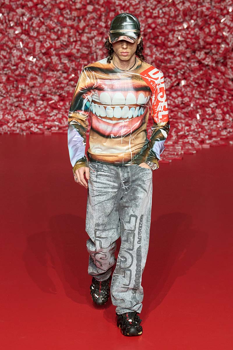 Diesel FW23: una celebración por la libertad individual frente a una montaña de preservativos
