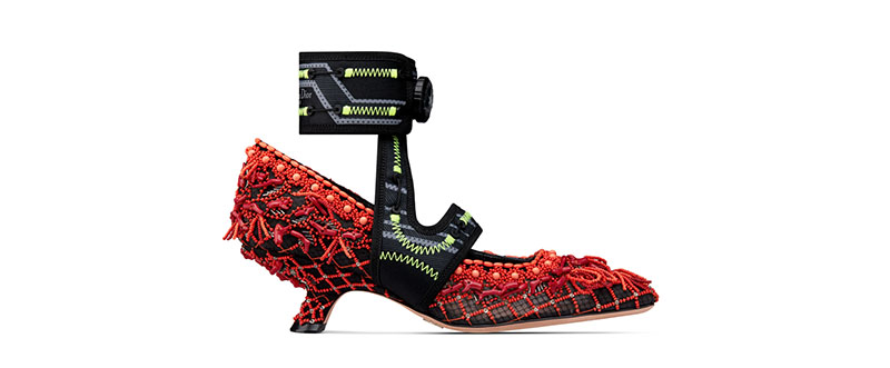 El nombre del vanguardista modelo de zapatos, Dior 62-23, hace referencia al año en el que se creó el diseño original. Ahora, esta joya de la alta moda parisina resurge de sus cenizas para mostrar su lado más modernista gracias a unos elaborados bordados que se combinan con elementos técnicos inspirados en la investigación del laboratorio D-Air.