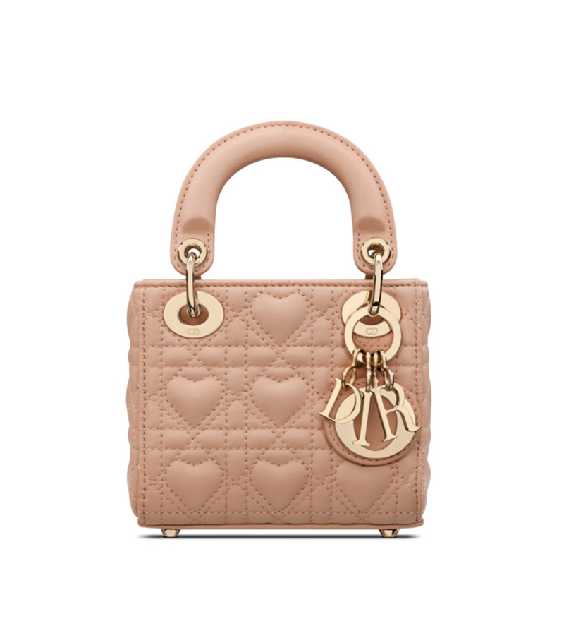 Todos podemos reconocer el icónico patrón geométrico que adorna el bolso Lady Dior, ¿no? Pues el nuevo estampado de Dior también se cuela en los bolsos; dándonos una versión nueva del Cannage. Ahora, en vez de rombos, vemos al bolso con un acabado de corazones (un regalo perfecto para San Valentín, ¿no?) También el nuevo estampado de Dior inspira un bolso con el mismo motivo, pero en forma de corazón, para más inri.