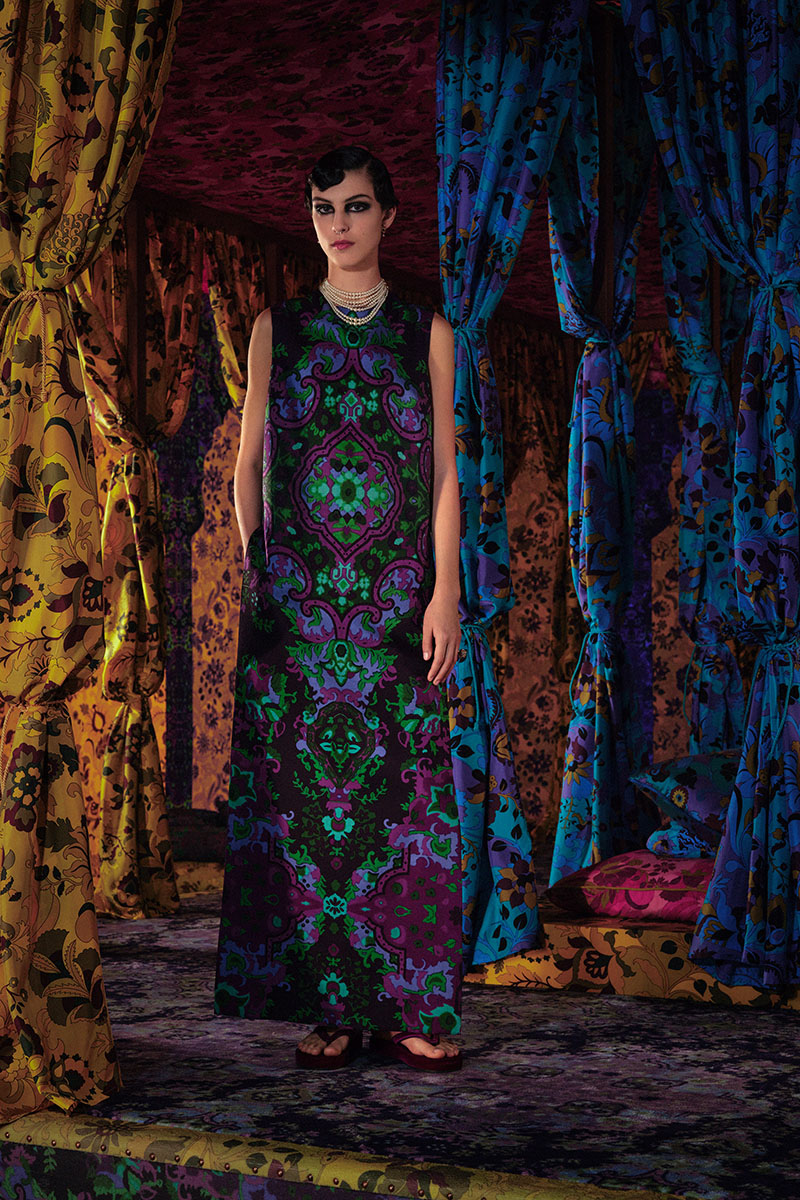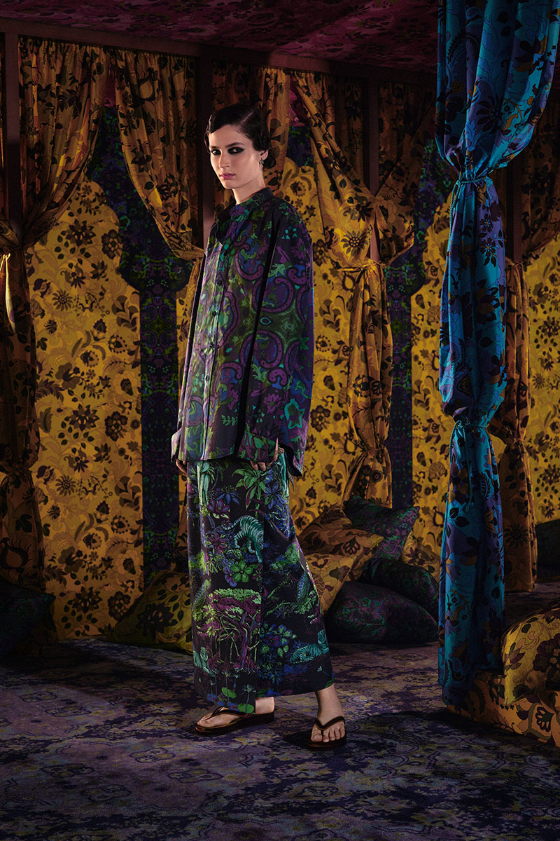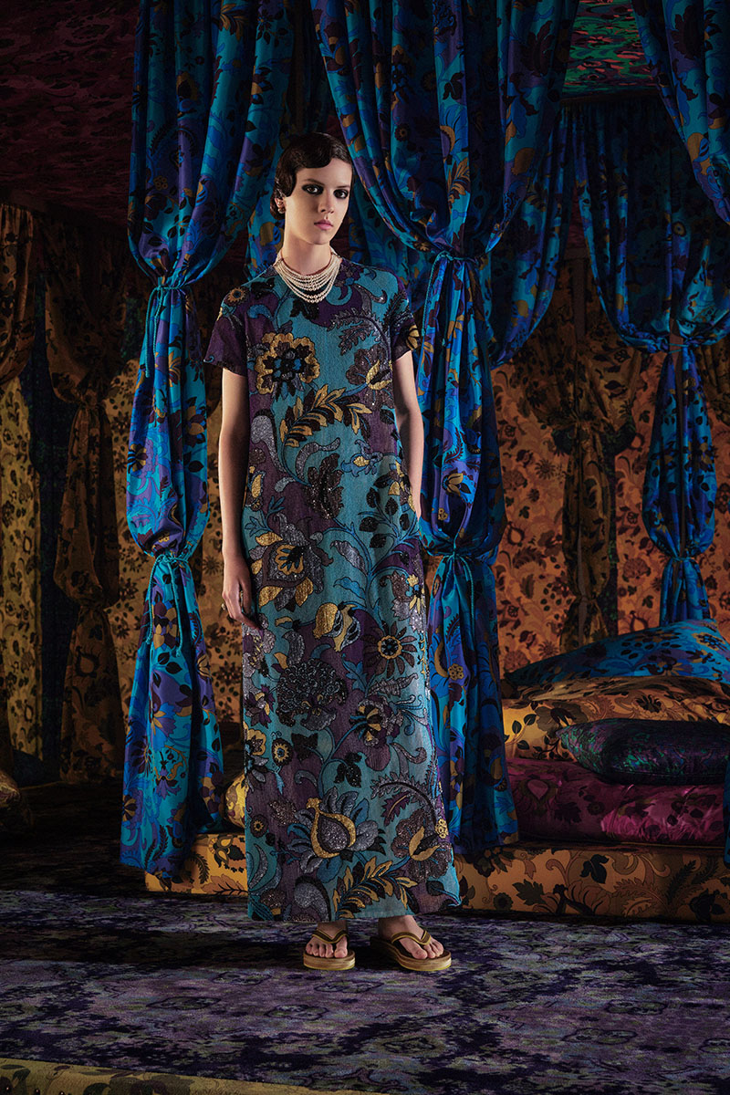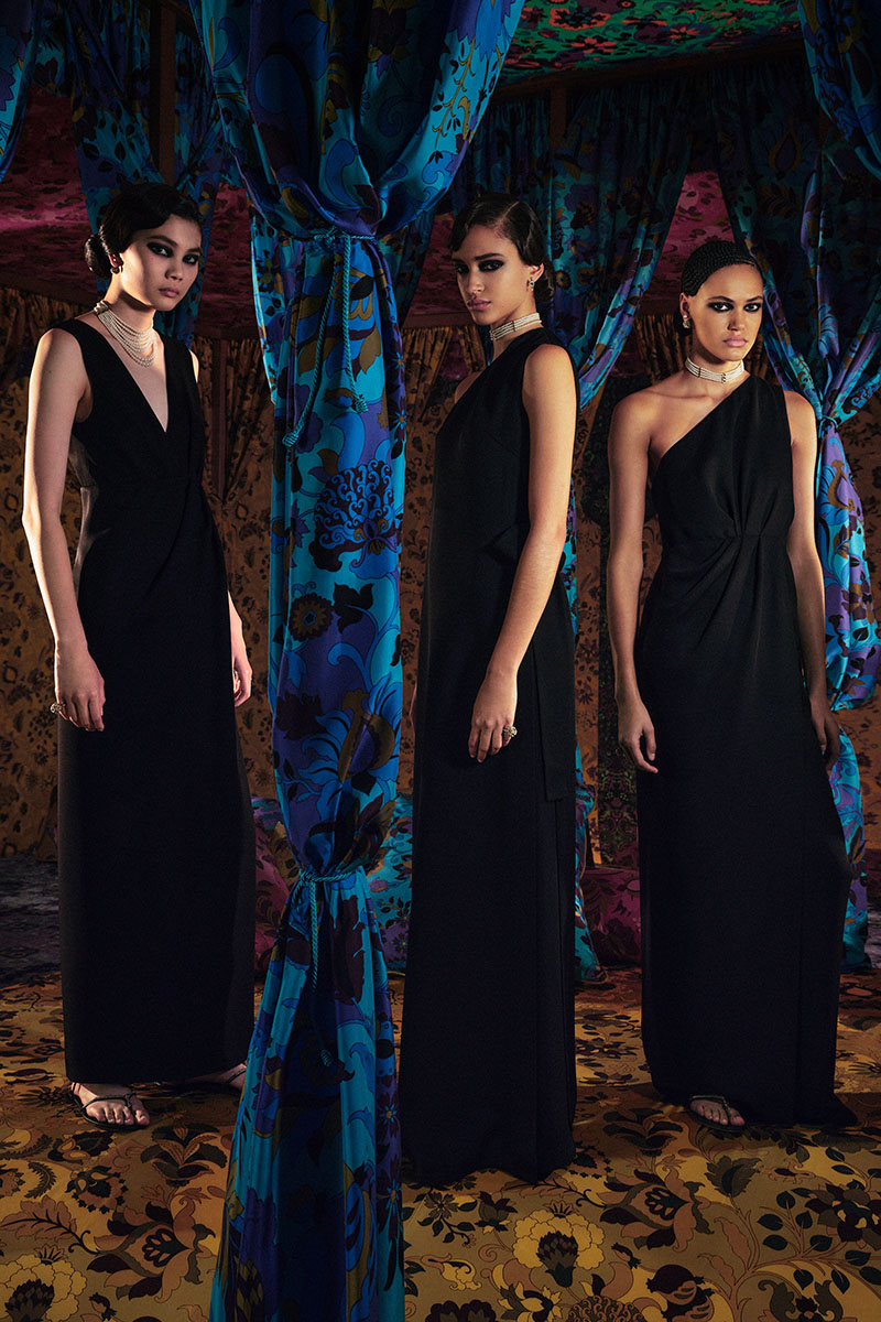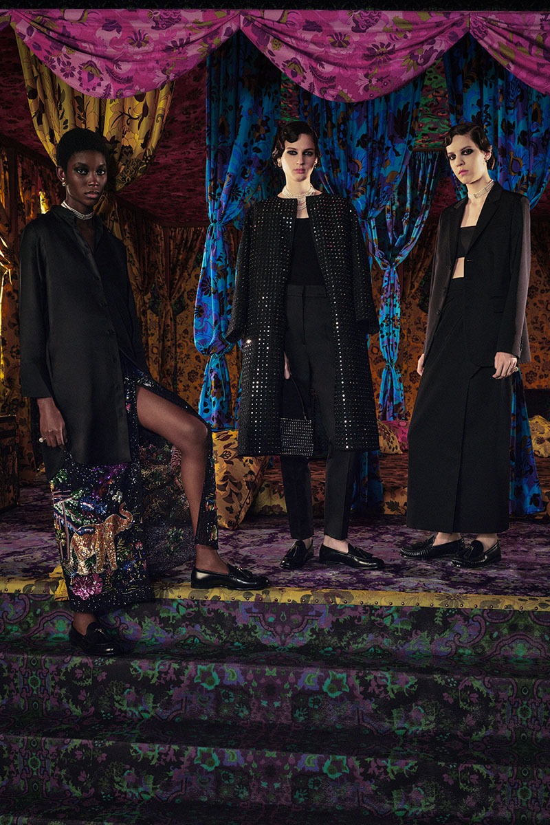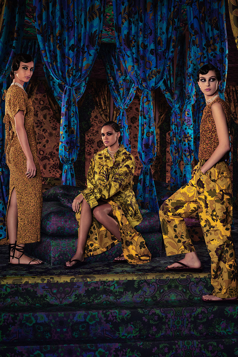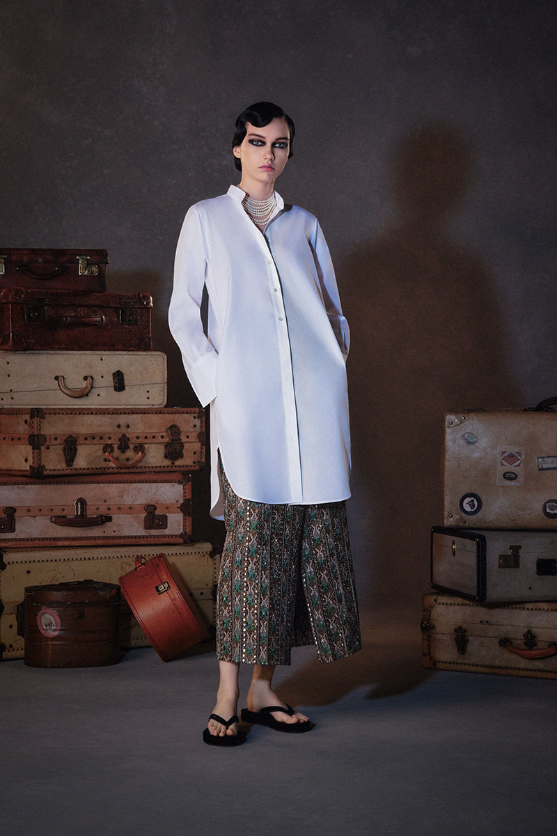 Ahora Maria Grazia Chiuri revisita de nuevo esta fuerte identidad estética escogiendo paletas de colores y materiales que exaltan las influencias compartidas con Karishma Swali. El resultado con formas atemporales en secuencia de bloques de color dedicados a las sedas en tonos verdes, amarillos, rosas y morados.