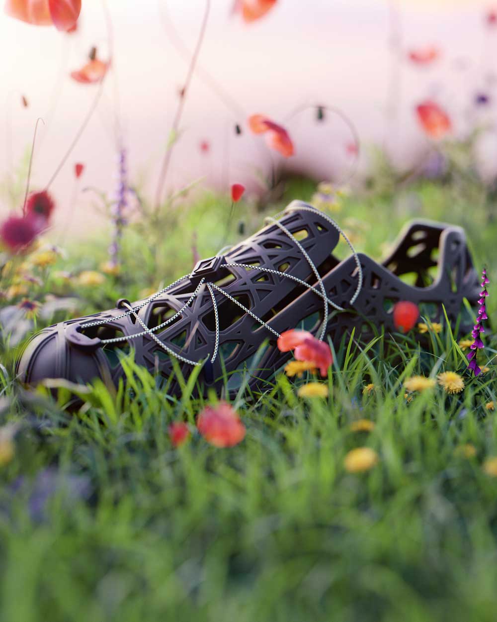 Las nuevas zapatillas Dior Warp se pueden interpretar como unas sneakers, pero también como unas sandalias que protegen el pie semidescalzo con una estructura de rejilla. Un armazón de goma Cosmo soldada y alabeada mediante innovadoras técnicas para combarla y curvarla al antojo del diseño de Kim Jones. Una especie de render 3D que sorprende. El resultado es un calzado innovador, ligero, elegante y sportswear. Todo a la vez. Un diseño con reminiscencias de la estética de montaña en los cordones bicolores con un stopper que interpreta la el ya mítico sello CD Diamond. Y a pesar de su aparente rigidez, las zapatillas Dior Warp son muy flexibles, y cómodas. El pie descansa sobre una cómoda plantilla de goma.
