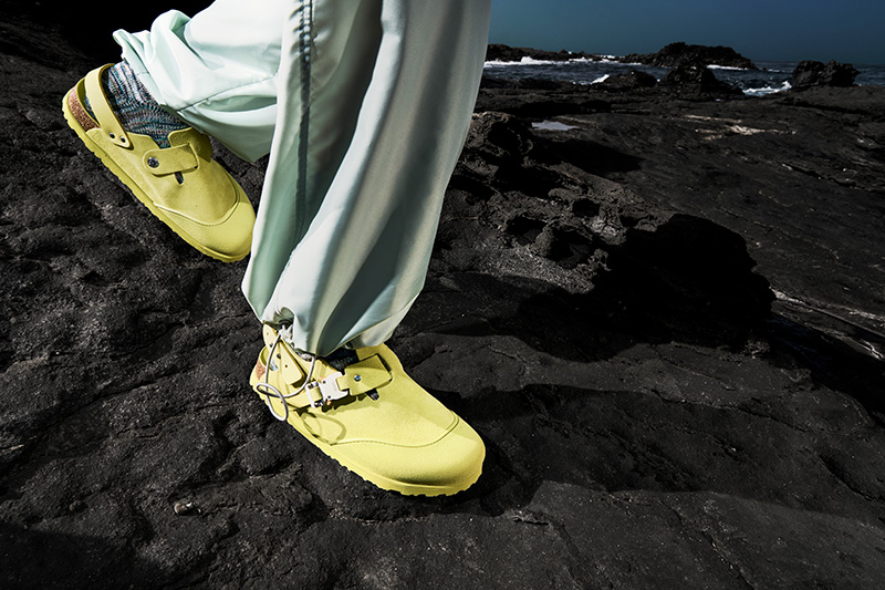 Tal y como en la primera entrega de esta colaboración, la estrella es el modelo Tokio; un mule que comprarte grandes similitudes con el icónico Boston pero que presenta una correa para el talón. Para esta entrega veraniega, las siluetas se presentan en ante teñido con tres opciones de color muy apetecibles: khaki para los más clásicos, amarillo flúor a juego con algunas prendas de la propuesta de beachwear y verde mar, para los que quieran experimentar.