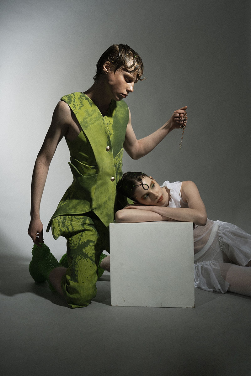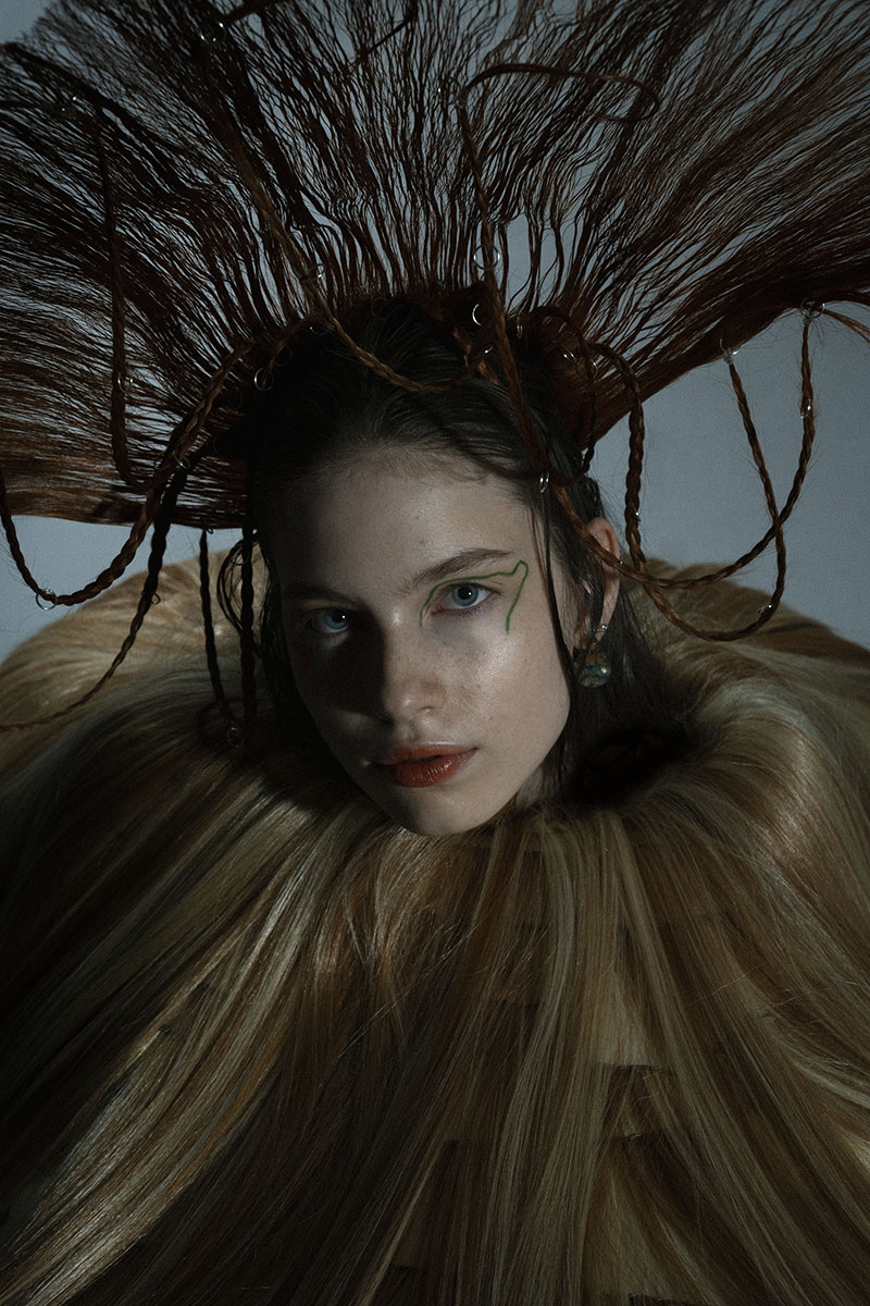 Para la sesión se fotos que podréis disfrutar a continuación, la joven diseñadora de moda se ha rodeado de un equipo de creativos formado por la fotógrafa Vinyet Feliubadaló, el director de arteJuan Muñoz Mejías y el maquillador @alvaroniric para poder transmitir de la mejor manera posible lo que quiere transmitir a través de estas “prendas” que se tambalean en el limbo entre la moda y el arte.