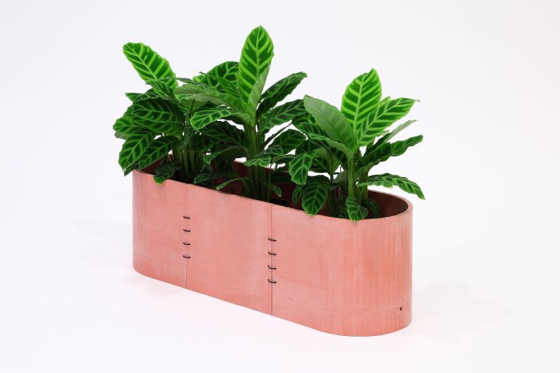 Haciendo referencia a las grapas del lañado, se han creado dos módulos básicos unidos mediante bridas que conforman una maceta modular de largo variable. Dentro de la propia pieza, se han incluído los sistemas de almacenamiento y salida del agua, así como se ha fabricado un prototipo impreso en 3D color terracota imitando el color del barro rojo.